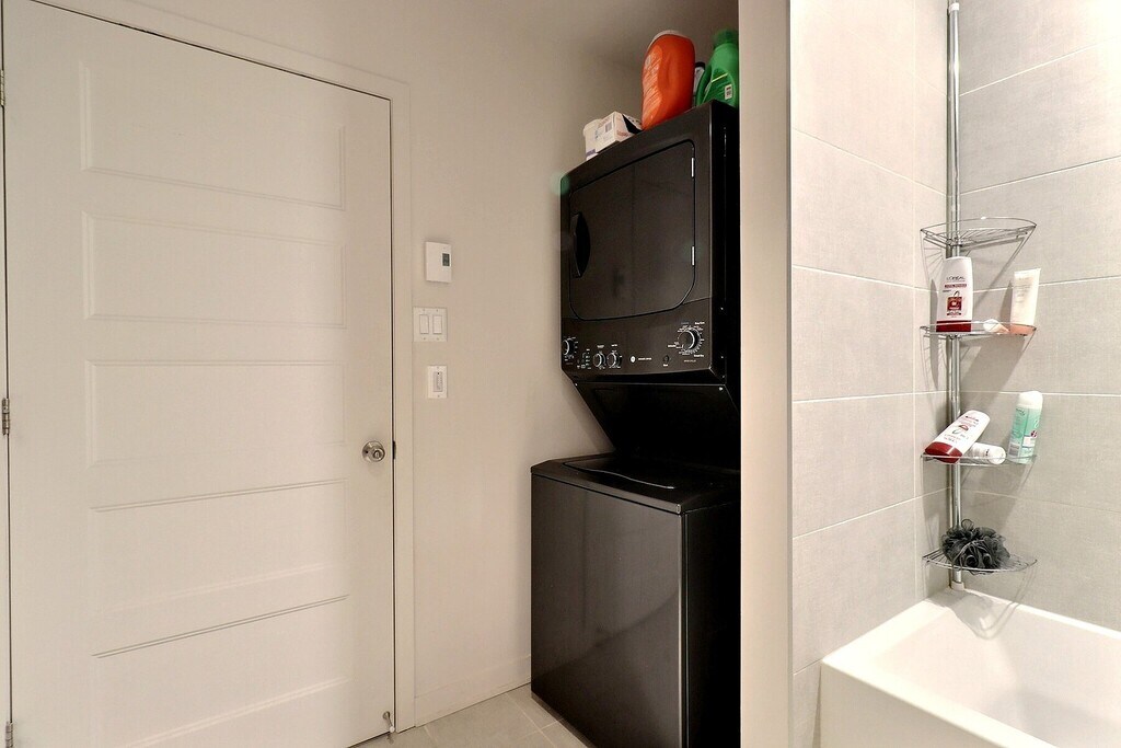 Cozy and thoughtfully designed, this ground-floor 1-bedroom condo features an open-concept layout, a private interlock patio, and a bedroom with an 11-foot closet. A washer and dryer are included in the bathroom. The Onze de la Gare complex is impressive, boasting a heated saltwater pool, a patio with BBQs and gas fireplaces, a gym, a children's playground, and a private function room. Prime location in Vaudreuil-Dorion--commuter train, bus, shops, restaurants, waterfront, and quick access to Highways 20, 30, and 40. A complete lifestyle.