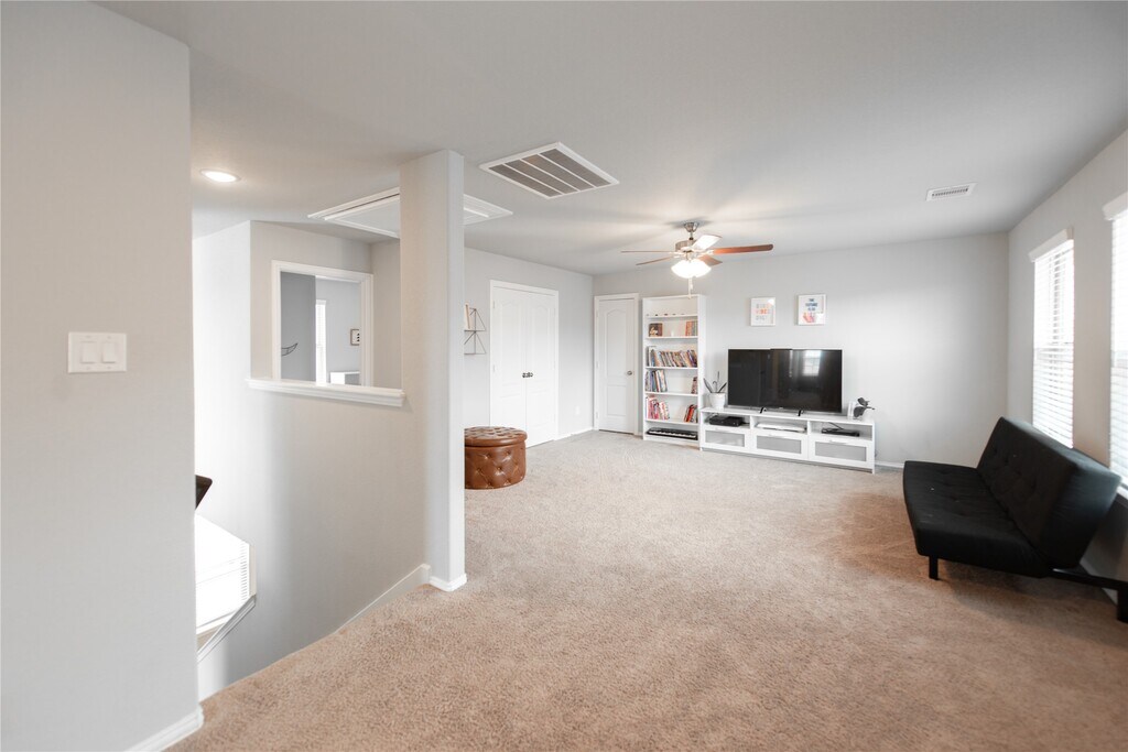 Stunning 4 Bedroom,2.5 Bath Home in Polo Ranch! Welcome to this gorgeous 2-story rental offering 2,246 sqft of comfortable living space. This move-in ready home features a bright,open floor plan with wood-look tile floors,perfect for modern living. The chef’s kitchen is a showstopper,complete with white cabinetry,granite countertops,subway tile backsplash,breakfast bar,gas range,and coffee bar. The spacious primary suite is conveniently located downstairs and features an en suite with dual vanities,extended shower and a large walk-in closet. The main level also includes a half bath and utility room for added convenience. Upstairs,you’ll find a massive game room with an attached loft area,three generous secondary bedrooms,a full bath,and a large,floored walk-in attic for all your storage needs. Relax or entertain outdoors on the covered back patio overlooking a spacious yard — with no rear neighbors and located at the end of a quiet cul-de-sac for added privacy. MLS# 34474125