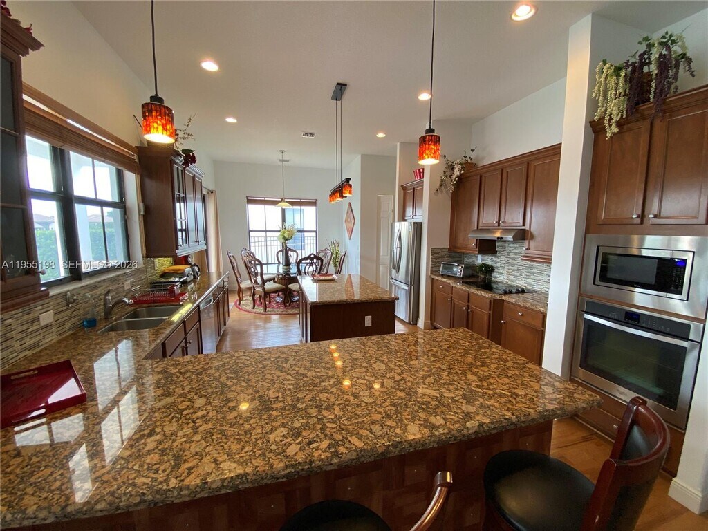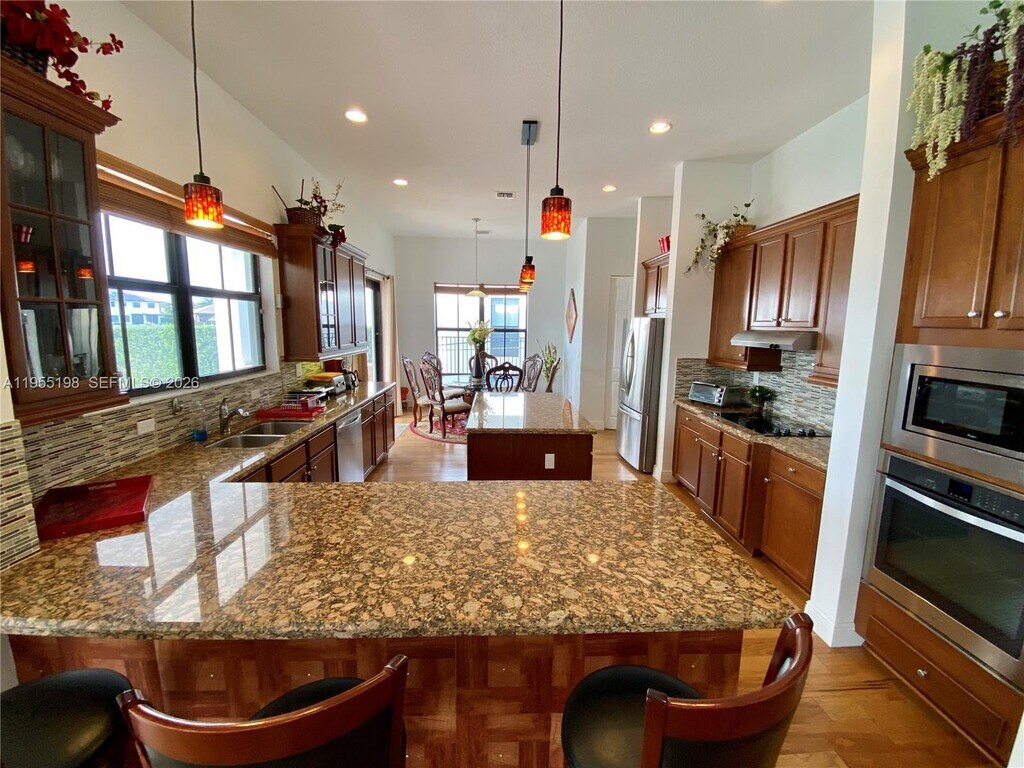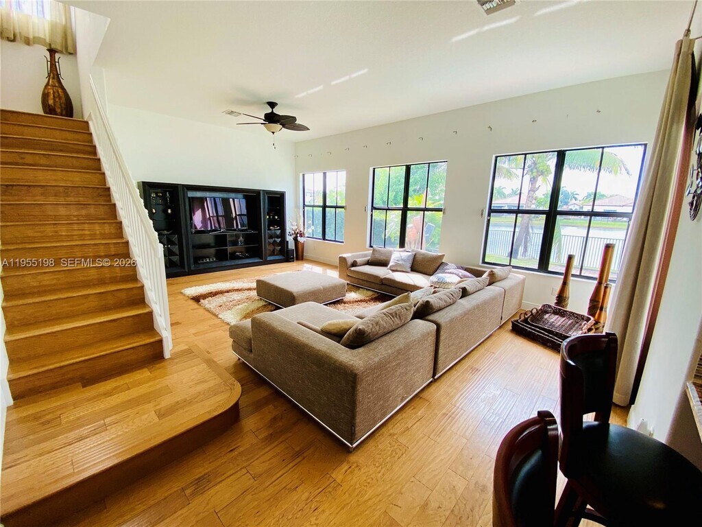 Fully furnished Monterra's Largest Model Fully Furnished! This 5 Bed/5 Bath Home Is Located in One Of The Best Communities in South Florida. The Home Offers An Exceptional Floorplan With Many Upgrades Including Impact Glass, Wood Floors, 3-Car Garage, Separate In-Law Suite. This Oversized Waterfront Lot Features a Custom Pool. The Gated Community Offers Resort Style Amenities Including Tennis & Basketball Courts, Fitness Center, and Dog Park. A+ Rated Schools, Just Minutes From the Airport. Minimum Credit Score 650 and First Month + 2 Month Deposit. MLS # A11955198