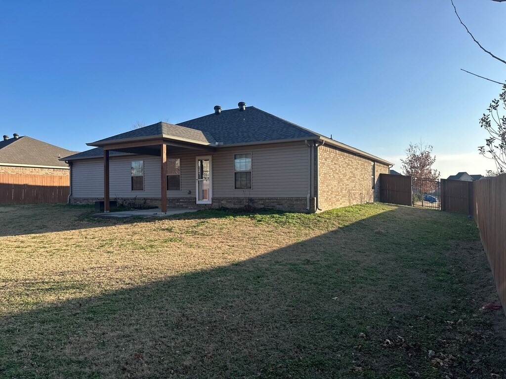 Ready for immediate move-in! 4 Bed, 2 Bath Home featuring: Split-Floorplan, Tall Ceilings in living area and primary bedroom, Two Car Garage, Covered Patio, Detached Storage Shed, and a Large Fenced-In Backyard with gated access to a relaxing common area behind the home. With nearby access to i-49 via Wagon Wheel Road, this home is in a prime Springdale location: within walking distance of JB Hunt Elementary, JB Hunt Park, Thunder Chicken Trailhead, Razorback Greenway, Lake Springdale. A Kitchen designed to entertain with eat-in dining area and ample countertop and storage space. All kitchen Appliances provided and maintained by management: Refrigerator, Electric Oven&Range, Microwave, and Dishwasher. Primary bathroom features a large walk-in closet, soaker tub and shower combo, and dual sink vanity. The large fenced-in backyard is perfect for your furry friends: Pets Permitted with $250 one-time Nonrefundable Pet Fee, and $15/month Pet Rent. Each charge is Per Pet. Contact 479 Properties to schedule a tour and apply!
