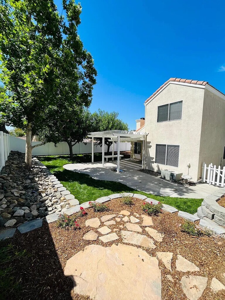 Popular "Paloma Del Sol" community! Come enjoy the community pool/spa, sport court, parks etc. Once inside you will appreciate the open feel with the vaulted ceilings and tons of natural light. Spacious kitchen with stainless steel appliances and large dining area. The living room has a nice fireplace, laminate flooring and direct access to this great backyard! Covered patio, mature landscaping and a very private feel is the perfect setting to get away.
