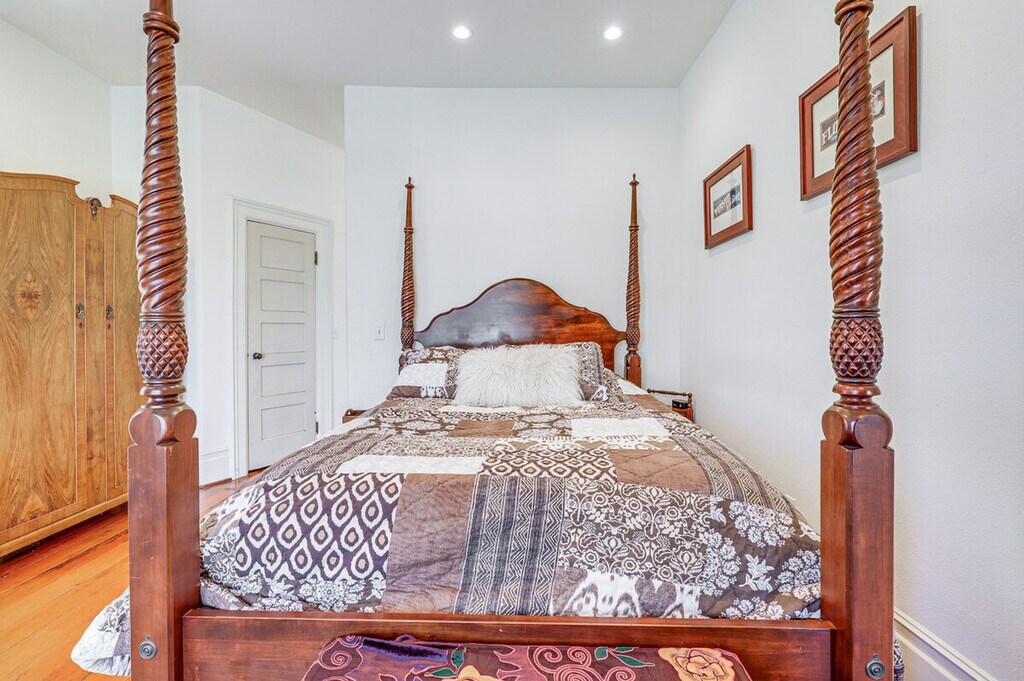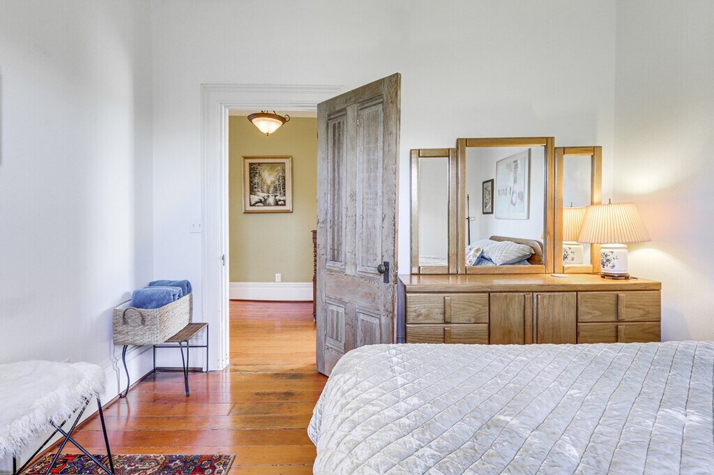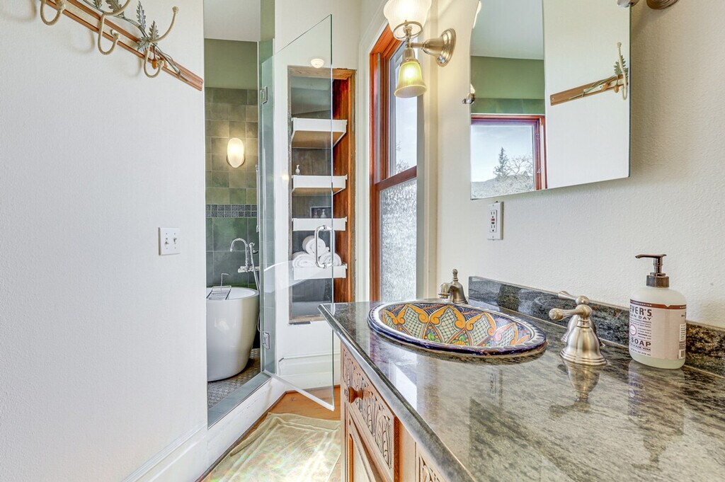 Feel at home during your next extended stay in Napa at this 3-bedroom, 3-bath home, which offers 3,000 square feet of living space. This 2-story home requires stairs to enter, and while there is a full bathroom on the 1st floor, additional stairs are required to access all bedrooms on the 2nd floor. This charming home features a smart TV with cable, a dry bar, a dining table and island with barstools, books, a walk-in closet, central AC and heating, and a ceiling fan. The updated kitchen is equipped with a stove/oven, refrigerator, dishwasher, microwave, toaster, blender, drip coffee maker (coffee provided), ice maker, cooking basics, and dishware/flatware. A washer and dryer (detergent provided), iron and board, complimentary toiletries, and a hair dryer are also provided. Driveway parking is available for up to 4 vehicles. The 7-acre plot features an on-site vineyard and garden. Enjoy the outdoors with a large deck with a picnic table, a fire pit, a gas grill, a furnished porch, a balcony, and a paved courtyard. Source local produce from Oxbow Public Market, which is close to shops and eateries. Quiet hours are observed from 9:00 PM to 7:00 AM from Sunday to Thursday and from 10:00 PM to 7:00 AM on Friday and Saturday. [SI]