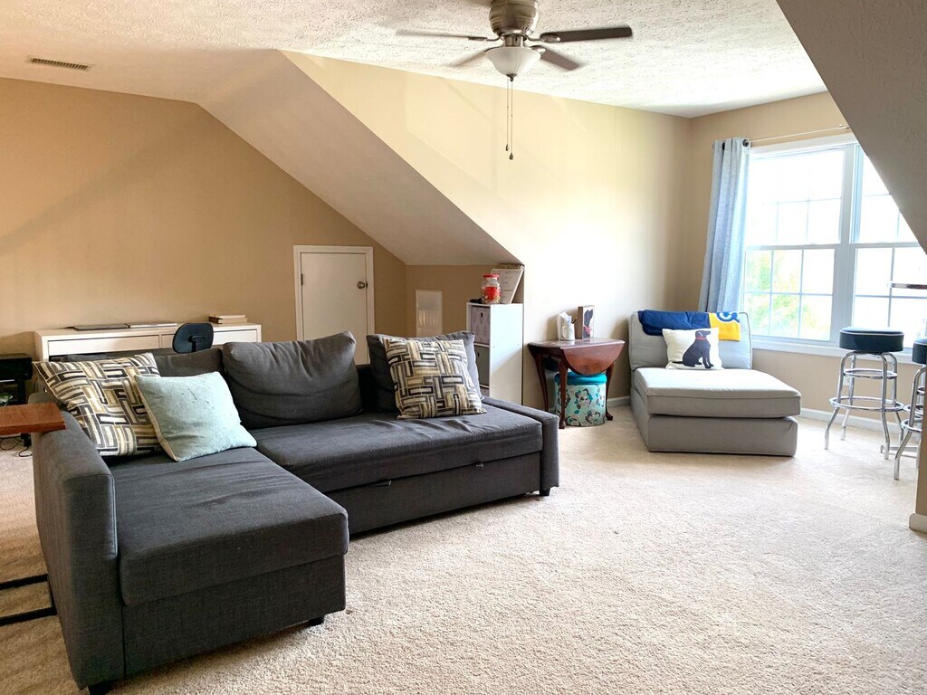 Step into comfort and charm with this beautifully maintained 3 bedroom 1 bath home featuring a spacious living room equipped with high ceilings and a stunning stone fireplace that is perfect for cozy evenings. The kitchen offers ample cabinet space, ideal for all your culinary needs. The primary bedroom features a walk-in closet and attached full bath. The expansive bonus room above the attached 2 car garage is perfect for a home office, playroom, or guest space! The gorgeous privacy fenced backyard with a fire pit can be your own outdoor retreat. Pet-friendly with a $300 fee per pet (limit 2; no puppies under 12 months or aggressive breeds)