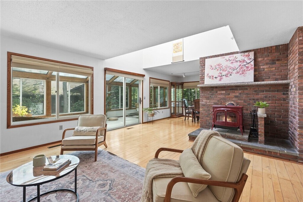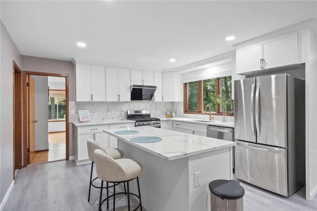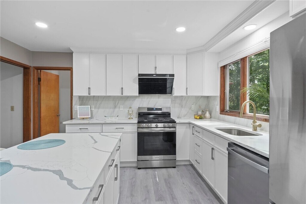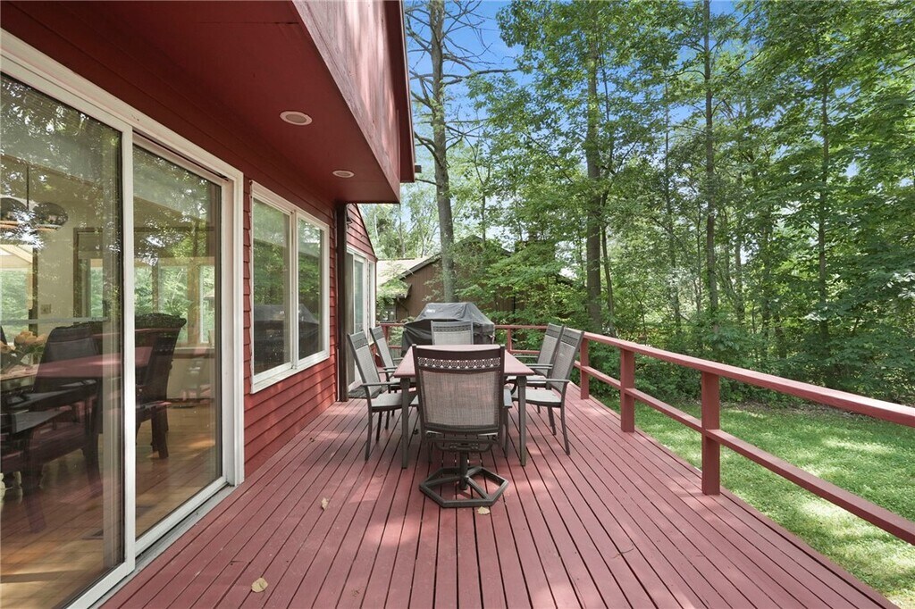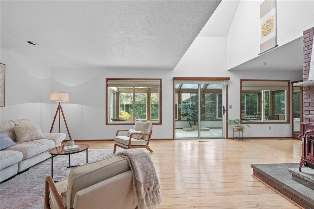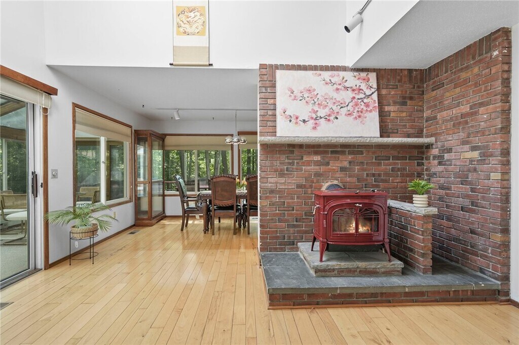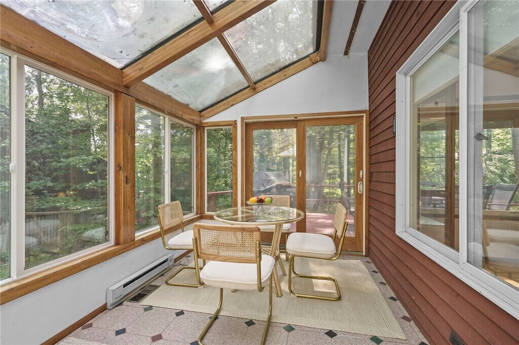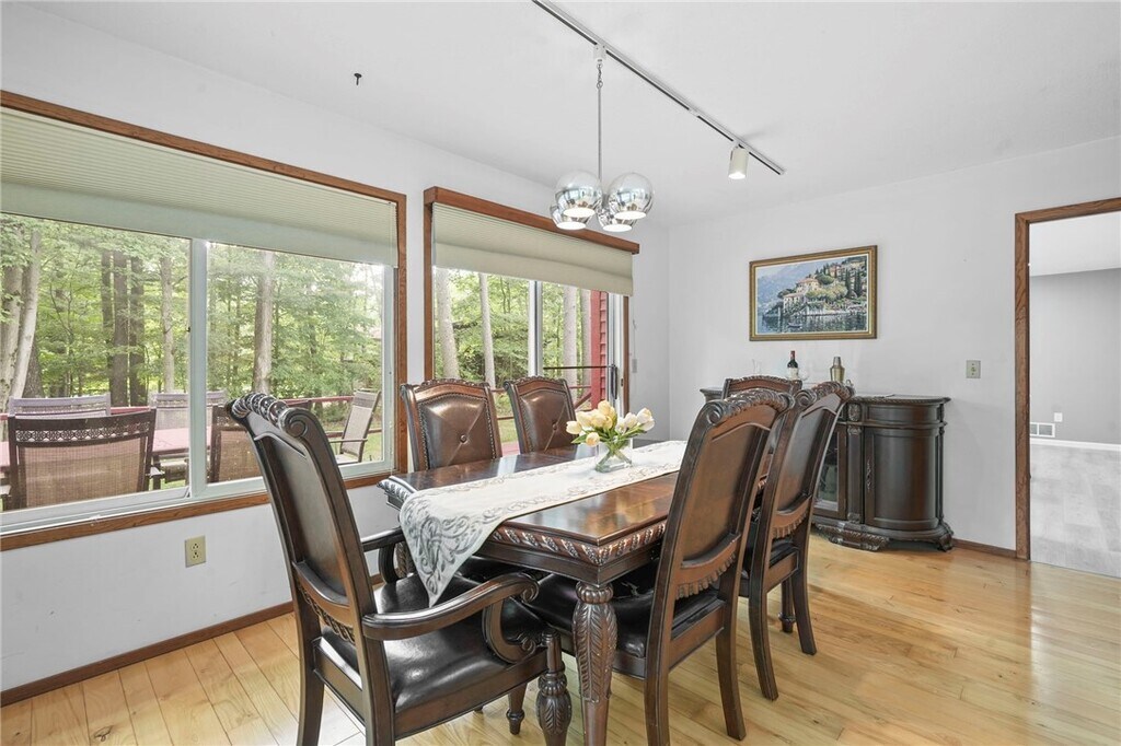 Karen HollandsWelcome to 318 Blackstone, a 5-bedroom, 3.5-bath contemporary home tucked into Ithaca?s sought-afterNortheast neighborhood. This architecturally distinctive residence blends light-filled spaces w/ natural elements and is just minutes from schools, shopping, andCornell. On the main level, step into this dramatic home w/ vaulted ceilings, expansive windows, and an inviting wood stove set into a stone hearth. Hardwood floors extend into the open-concept living and dining area, where sliding glass doors open to a stunning solarium that seamlessly blends indoor comfort w/ outdoor beauty. This sleek, modern kitchen is a true showstopper - bright, functional, and stylishly designed for both daily living and entertaining. Clean white cabinetry pairs beautifully w/ veined quartz countertops and a full-height backsplash, creating a fresh, high-end aesthetic. The center island offers casual seating and generous prep space, while stainless steel appliances and a gold-tone faucet add a touch of contemporary flair. Natural light pours in through the wide window above the sink, framing serene wooded views. Just off the kitchen, the space flows effortlessly into a cozy, sunlit living area - ideal for entertaining, w/ a seamless flow between cooking and conversation. The upstairs is anchored by the primary suite, where you'll find a generously sized primary bedroom w/ walk-in closet and an en suite bathroom. Three additional bedrooms, each with ample natural light and closet share a full bathroom conveniently located between the three. There is an additional bedroom, full bath, dedicated laundry area and recreation room for the main house in the basement. Fantastic location, walkable to Northeast Schools and the bus line.