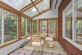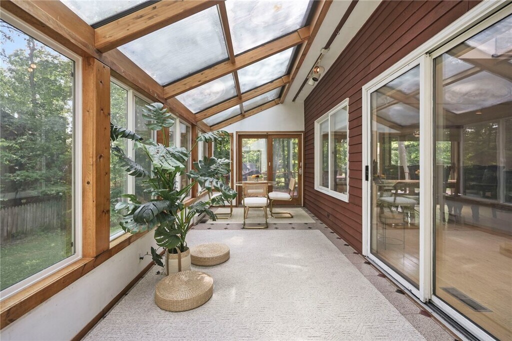 Welcome to 318 Blackstone,a 5-bedroom,3.5-bath contemporary home tucked into Ithaca?s sought-afterNortheast neighborhood. This architecturally distinctive residence blends light-filled spaces w/ natural elements and is just minutes from schools,shopping,andCornell. On the main level,step into this dramatic home w/ vaulted ceilings,expansive windows,and an inviting wood stove set into a stone hearth. Hardwood floors extend into the open-concept living and dining area,where sliding glass doors open to a stunning solarium that seamlessly blends indoor comfort w/ outdoor beauty. This sleek,modern kitchen is a true showstopper - bright,functional,and stylishly designed for both daily living and entertaining. Clean white cabinetry pairs beautifully w/ veined quartz countertops and a full-height backsplash,creating a fresh,high-end aesthetic. The center island offers casual seating and generous prep space,while stainless steel appliances and a gold-tone faucet add a touch of contemporary flair. Natural light pours in through the wide window above the sink,framing serene wooded views. Just off the kitchen,the space flows effortlessly into a cozy,sunlit living area - ideal for entertaining,w/ a seamless flow between cooking and conversation. The upstairs is anchored by the primary suite,where you'll find a generously sized primary bedroom w/ walk-in closet and an en suite bathroom. Three additional bedrooms,each with ample natural light and closet share a full bathroom conveniently located between the three. There is an additional bedroom,full bath,dedicated laundry area and recreation room for the main house in the basement. Fantastic location,walkable to Northeast Schools and the bus line.