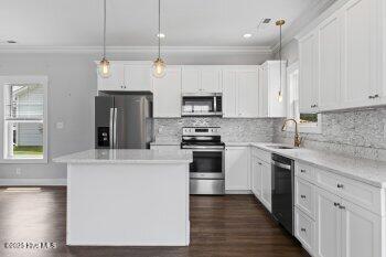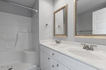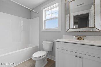 Like new 3 bedroom 2.5 bathroom home in the popular waterfront neighborhood of Kingsbridge II The downstairs has an open floor plan with LVP and crown molding and beautiful light fixtures. Large living room has electric fireplace and decorative mantle. The kitchen has quartz countertops, beautiful tile backsplash, stainless steel appliances and a large island to enjoy a meal or prep food. The upstairs is very spacious with 3 bedrooms and a bonus room over a large 2 car garage. Upstairs Master has trey ceilings, walk-in closet and large bathroom with double sinks. Enjoy a good book on the front porch or relax under the gazebo on the back deck. The backyard overlooks natural vegetation. The neighborhood has a community boat ramp. Convenient to local beaches, historic downtown Swansboro and other local attractions. Short drive to Camp Lejeune.