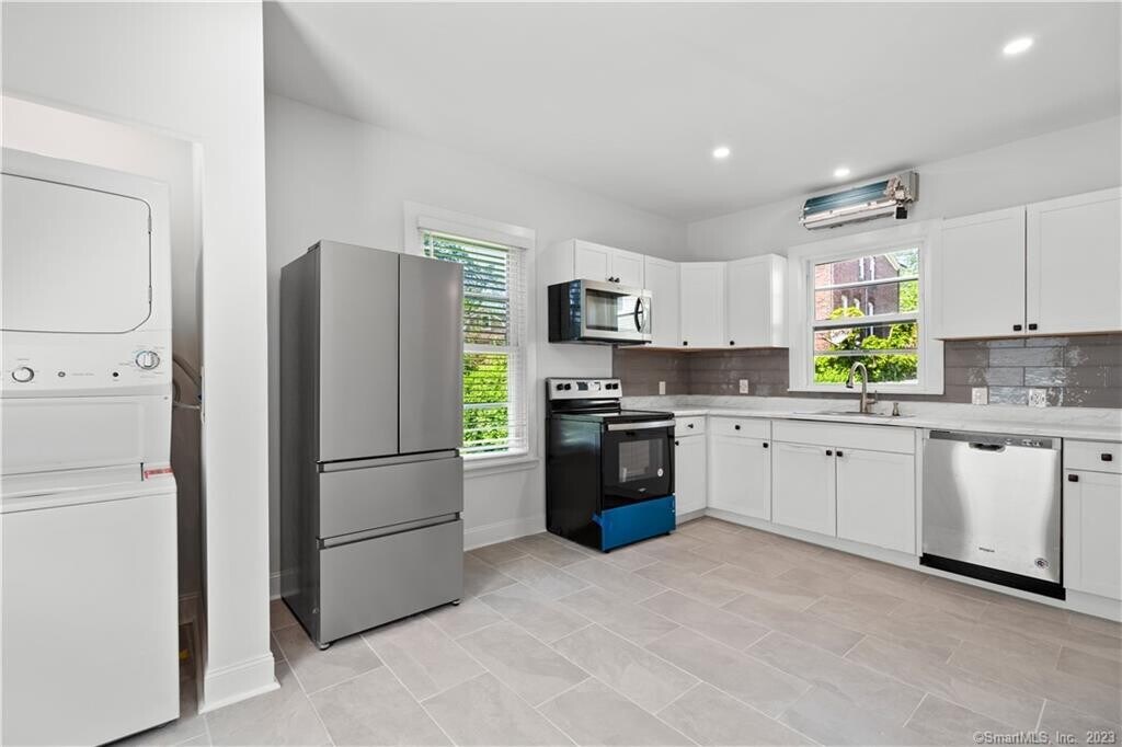Call for Availability - New renovation! 3 BR 1.5 BA in the heart of East Rock! Refinished hardwood floors, updated kitchen with appliances, washer & dryer in unit. This spacious 1st floor unit offers plenty of space for roommates to share, and in a great location to walk to everything. New split AC / heating units, 1 tandem driveway parking spot. Pets considered with extra deposit / fee. Tenants pay all utilities (all electric heat, hot water, AC). Available 8-1 with good credit and 1.5 months security. MLS# 24161113