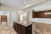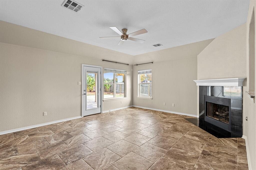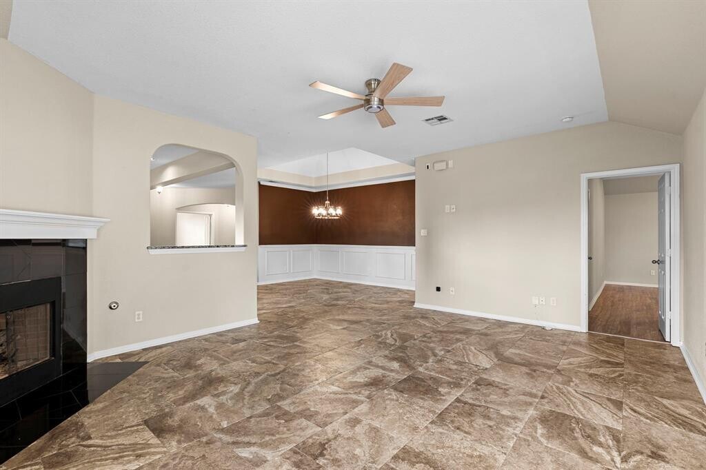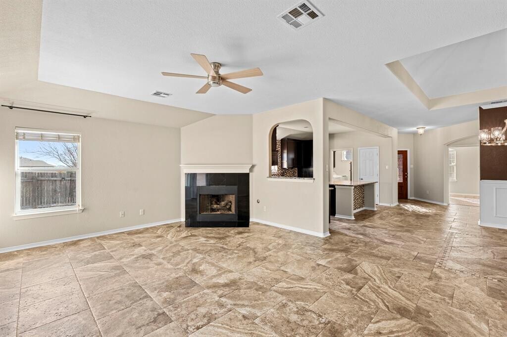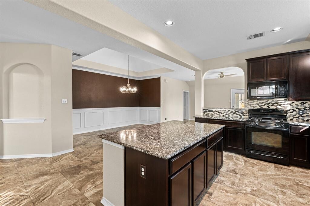 Beautiful maintained home in the desirable master community. This inviting residence features an open concept layout with no carpet throughout, providing both style and easy maintenance. The spacious kitchen is ideal for entertaining and everyday living, showcasing dark cabinetry, granite countertops, stainless steel appliances, a large center island and a stylish mosaic tile backsplash. The kitchen opens seamlessly to the living area, where you we'll find a cozy fireplace that adds warmth and the charm to the space. A formal dining area with custom wainscoting and a modern chandelier adds an elegant touch. Enjoy attractive curb appeal with a landscaped front yard, mature trees, and a covered entryway. Covered back patio with extended patio to enjoy year round. Plus under fascia lighting for ALL your holiday needs!! Move in ready!