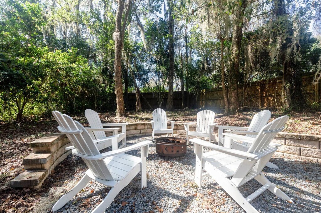 Feel at home in this private 4-bedroom, 2-bathroom home located in the coveted Golf View neighborhood, between the Mark Bostick Golf Course and the UF Law School. This newly renovated and nicely appointed home features a tree-lined backyard with a firepit, outdoor string lighting, and ample entertaining space. The home has a king-size bed, 2 queen-size beds, and 2 full-size/twin bunk beds. Located in the quiet, peaceful, and tree-filled Golf View community, this home is a short walk to Ben Hill Griffin Stadium, the O’Connell Center, the UF campus, and the bars and restaurants in Mid-Town. The restaurants and shops of Butler Plaza are a short 5-minute car ride away. Before you arrive, you will be asked to complete guest verification through third-party provider Truvi. This is done to ensure we are keeping up-to-date with short-term rental regulations as well as providing both our guests and our properties with extra protection. Truvi will contact you via email and/or text to complete the verification. Please do so prior to arriving at the property to enable a quick and easy check-in process. [SI]