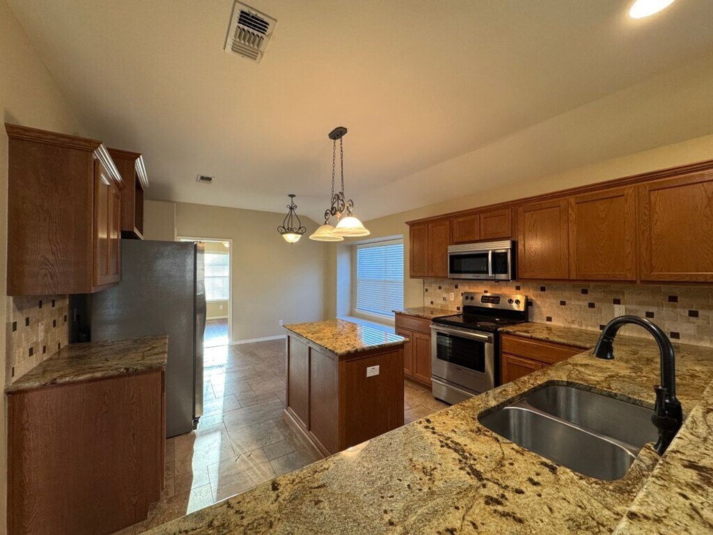 Available now in Silverado Subdivision! This 3 bedroom, 2 bath is approx. 1,712 sq. ft. with a split floor plan, formal dining area, and indoor laundry room. The open concept kitchen comes equipped with a stove, refrigerator, dishwasher, and microwave. This home also features a 2-car garage, covered back patio, and a large backyard with a storage building. It is conveniently located near shopping, schools, and the walking/jogging trail. Rent $2,195.00. Deposit $2,000.00. No smoking. No pets. Call Woolson Real Estate, Inc. for additional information or to schedule a showing. .