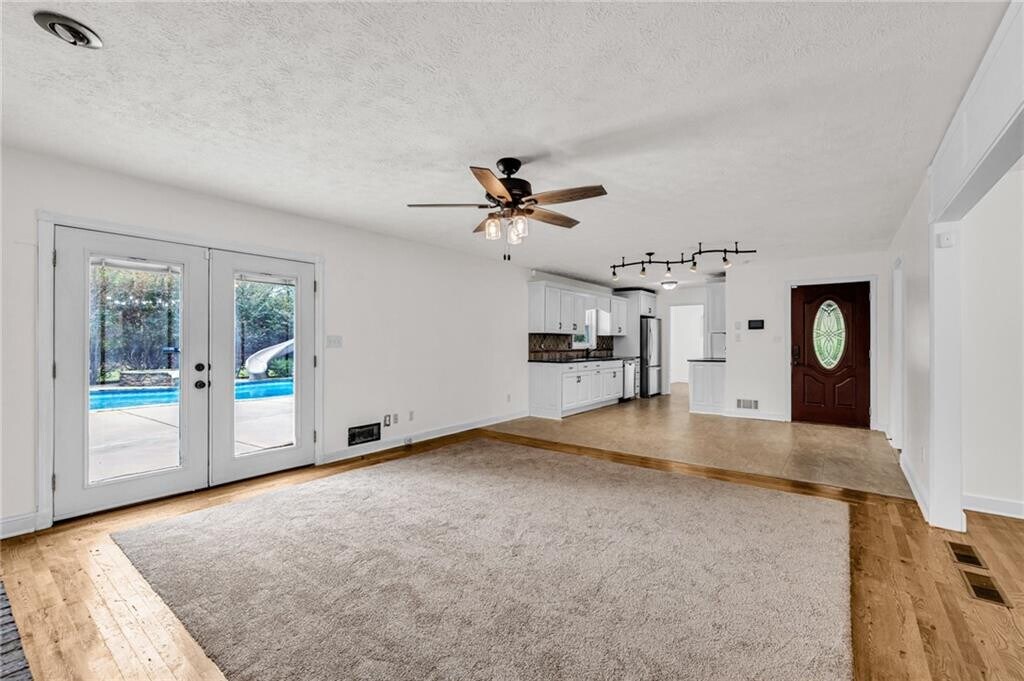 Charming brick ranch in a convenient location with easy access to I-85,Peachtree City,Fayetteville and Trilith. This freshly painted home offers an open layout that’s perfect for everyday living and entertaining,with flexible spaces to fit your needs. The bright,airy kitchen overlooks the backyard,bringing in plenty of natural light. The spacious family room features a cozy fireplace with built-ins,creating a comfortable place to relax. Beautiful hardwood floors run through much of the main living areas. Two secondary bedrooms share an updated bathroom with double vanities. The master bedroom includes a private,updated bathroom for added comfort. The best part might be the backyard. You walk out through the French doors and it opens up to a saltwater pool with a ton of deck space—perfect for hanging out,grilling,or just relaxing. And there’s still plenty of yard beyond that. MLS ID 7743686