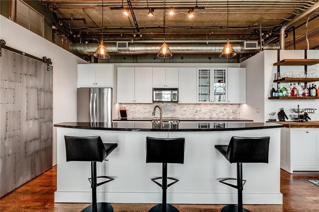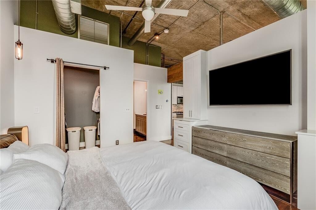 Originally conceived as a two-bedroom,two-bath loft,this residence has been reimagined into a bold,design-forward primary suite transforming the second bedroom into an oversized,boutique-style walk-in closet and creating a rare dual-bath,dual-closet layout that lives more like a private retreat than a conventional condo. Set within Mathieson Exchange Lofts,this ultra-stylish unit embraces its industrial roots with a refined,modern edge,tucked on the quieter side of the building for a calm,creative escape just steps from Buckhead's energy. The open-concept living space is filled with natural light and offers an effortless flow that works equally well for relaxed daily living or hosting friends,while distinctive barn doors open to a spacious primary suite with custom shelving and thoughtfully designed storage. The spa-inspired bath delivers a gallery-like feel minimal,clean,and intentional with a European-style wet room and double vanity that leans more boutique hotel than traditional condo. A flexible bonus area adds versatility and can easily function as a studio,office,reading nook,or guest space depending on your needs. Two mounted televisions,including an 85-inch and 65-inch,remain with the property. Residents enjoy 24/7 concierge,a fitness center,resort-style pool,rooftop gathering spaces,secured parking,and private storage,all in a prime location surrounded by Atlanta's best dining,art,and nightlife. MLS ID 7734950