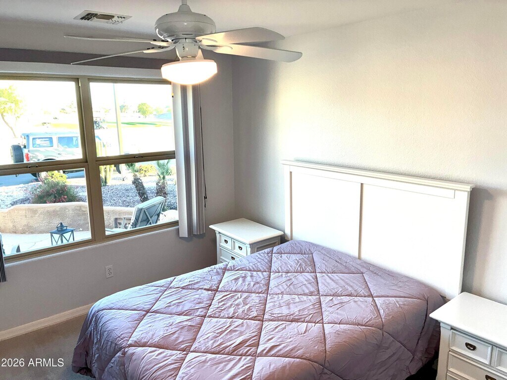 Outstanding Golf Course Views in a GATED COMMUNITY! Unobstructed View of #3 Green at Lone Tree Golf Course,and a beautiful Flagstone Front Courtyard where you can Relax and Watch the Golfers. This Retreat Floor Plan has Vaulted Ceilings,Split Bedroom Floorplan,an Inside Laundry Room,and a 2-Car Garage. You will feel right at home with Plantation Shutters,and Tile in All the Right Places. A new HVAC will keep those electric bills lower,and a Private South-Facing Backyard will be a Wonderful Winter Reprieve. Amenities include Recreation Center,Lighted Tennis AND Pickleball Courts,TWO Heated Pools/Spas,Fitness Center,Billiards,Bocce Ball,a Ballroom,and MANY Social/Recreational Activities. Enjoy the Active Adult Lifestyle.