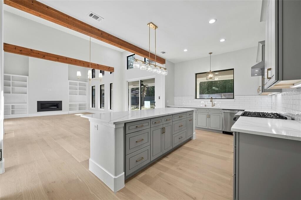 Absolutely unbelievable custom home nestled under a shady canopy of towering Pines on .36ac lot just 3 min to the highly acclaimed Bastrop River Club Golf Course! Gorgeous design & quality craftsmanship are evident in every detail! From the min you walk up you are greeted with a vaulted front entry porch with wood inlay ceilings & engulfed in natural light from the 14ft beamed ceiling s& huge Pella windows with transom accents that make this a bright & happy home! No expense spared on details include: Stunning European White Oak hardwoods throughout, 8ft modern doors, boxed out window seats, cozy FP surrounded by built in entertainment center, 5in baseboards& custom modern lighting! The gourmet kitchen features Carrara Quartz w 28+cabinets &deep pot drawers with tasteful brushed gold hardware, SS commercial grade THOR appliances w 6 burner stove, huge WIP with room for 2nd fridge, wet bar & glass accent pendants over the super island! The primary bedroom features a truly spa like bath with double Quartz vanities, custom mirrors, oversized WIS with marble mudset tile, seamless shower glass, free standing tub with wall mount fixtures& amazing WIC! Storage is fabulous w a large mudroom, big laundry with deco tile, built in sink with storage& oversized bill pay/office area with extended cabinets! Secondary bath features tasteful modern shower surround, hexagonal floor tile & double Quartz! The oversized backyard is perfect for entertaining friends & family & features a full length covered patio with standing seam metal roof! Other energy saving features are sealed foam insulation, tankless hot water, 30yr architectural shingles w gutters, full sprinkler& Energy Star HVAC & appliances! This location is perfect just 15min to Elon Musk's Boring Co & 40 min to Tesla Giga Factory or Downtown Austin for Festivals! This beautiful private oasis is the perfect retreat to feel peaceful!