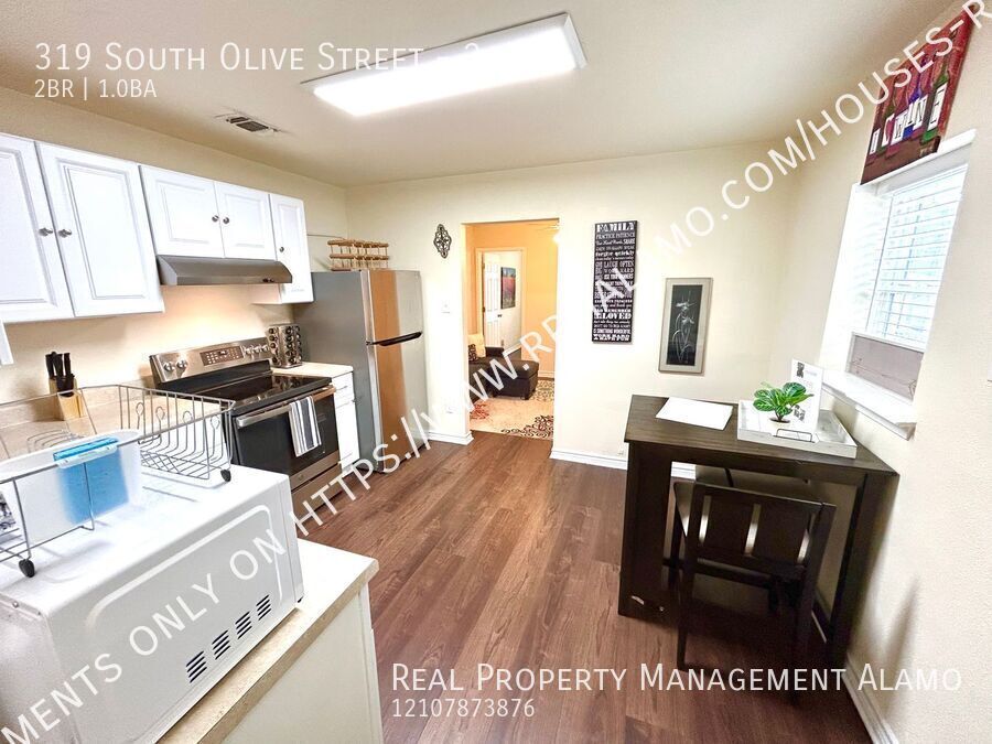 Nestled in the heart of San Antonio, 319 South Olive Street - Unit 2 offers a stylish and convenient living experience. This upstairs duplex unit features 2 bedrooms and 1 bathroom, providing a cozy and comfortable space for you. This unit has furnished and unfurnished options available to cater to your specific needs. The central air and heat system ensures you stay comfortable throughout the year, while the kitchen is equipped with stainless steel appliances, including a stove/oven, microwave, and refrigerator. The washer and dryer are conveniently located within the unit, making laundry a breeze. Situated near downtown San Antonio, this property puts you within easy reach of vibrant shopping, dining, and entertainment options. Whether you're looking to explore the city's rich culture or simply enjoy a evening at home, 319 South Olive Street - Unit 2 offers the perfect blend of urban convenience and comfortable living. For more information, e-mail us at Thank you! **NO SELF SHOWS** **24 NOTICE BEFORE SHOWINGS** ** Un-furnished pricing available** Schedule a showing TODAY!!: Apply here: RPM Alamo is proud to offer deposit-free living to qualified renters through Obligo! We understand that moving costs can add up, so we want to extend financial flexibility to our residents. When you move in with us, you can skip paying a security deposit and keep the cash for activities you care about. Learn more about the benefits of deposit-free living with Obligo’s brochure or on their website. All Real Property Management Alamo residents are enrolled in the Resident Benefits Package of their choice Tier 1 $55 or Tier 2 $70 monthly which includes HVAC air filter delivery (for applicable properties), credit building to help boost your credit score with timely rent payments, $1M Identity Protection, utility concierge service making utility connection a breeze during your move-in, our best-in-class resident rewards program, and much more! More details upon application. ***The information contained in this advertisement is subject to change. The terms of any lease, should you execute a lease with RPM, are found solely in the Lease Agreement itself, along with any applicable addenda. Situations that may affect change include, but are not limited to an applicant's credit rating which may affect the required security deposit amount, and new information provided to us regarding a unit that we did not know at the time we placed this advertisement.*** $350 Pet Fee Non Refundable $50 Pet Rent 1 Bathroom 2 Bedrooms Central Air/Heat Duplex Fully Furnished Near Downtown Unfurnished Pricing Available. Upstairs Unit Washer/Dryer
