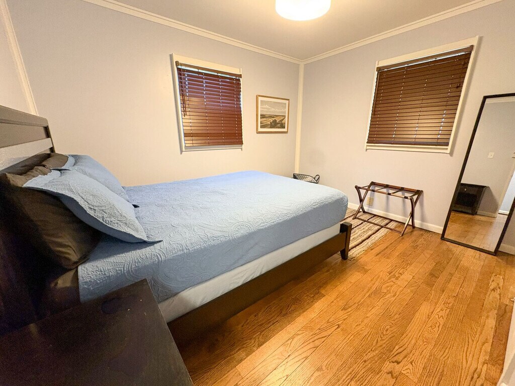 Feel at home in this charming 2-bedroom gem in Michigan City, a single-story home offering everything you need for a relaxing getaway. This home features a full bathroom on the main floor and a kitchen equipped with a small table for two. The finished basement includes a sectional sofa, smart TV, game table, and table for four. Enjoy the inviting backyard with a privacy fence, fire pit, gas grill, deck, and hot tub, perfect for entertaining or unwinding. A starter supply of firewood is provided in the plastic storage bin in the backyard. Located in a quiet residential neighborhood, this home is just a quick drive to the lake and the casino. Uber and Lyft are readily available for getting around. [SI]