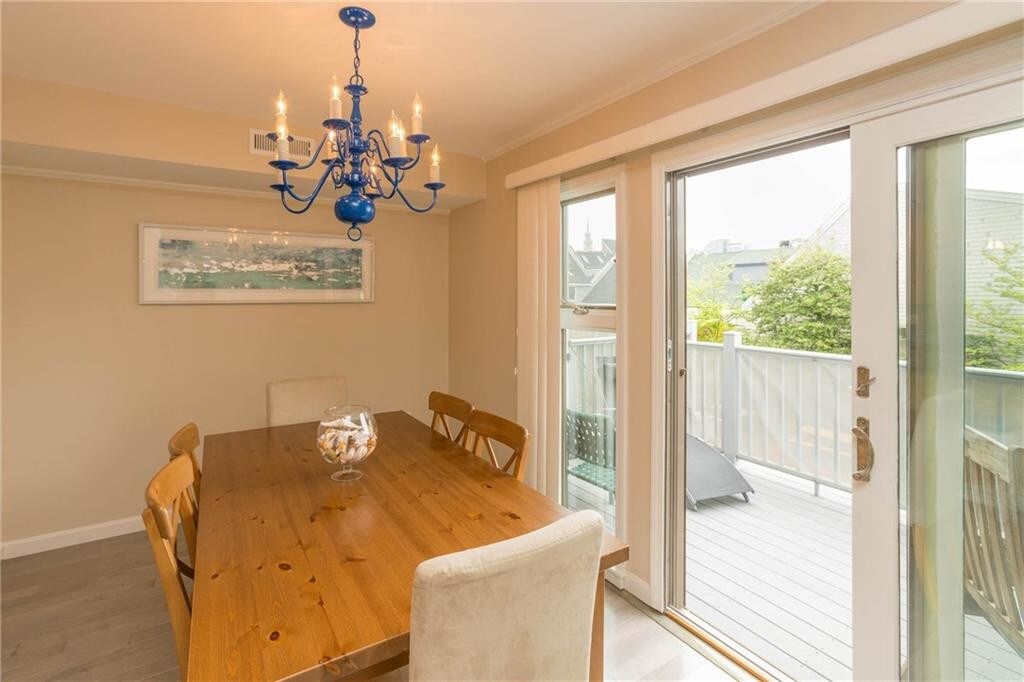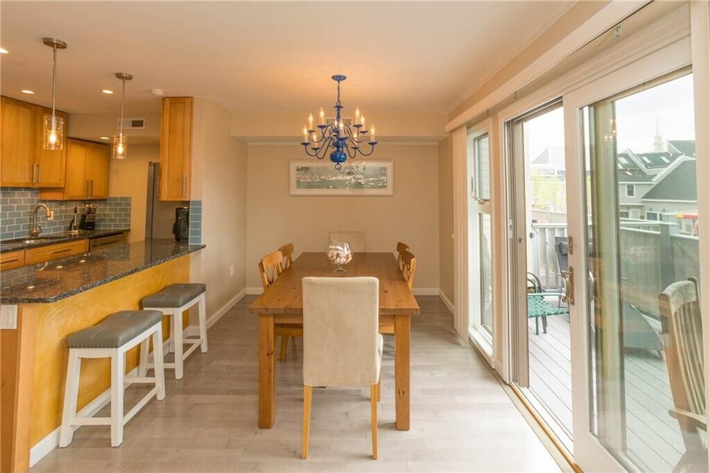 JULY - spend the month being in the heart of downtown Newport Wharf and Harbor areas with an active sailing,boating presence,shopping and Harbor Masters ' Office with views of the Newport Harbor. Private,gated Brick Market Place Condominiums with two parking spots and walkable to waterfront activities,wharfs for dining and strolling. Sun-filled,end unit with water views from the South and West facing deck in which to enjoy the sun,sunsets and views to the promenade. Features central air,3 bedrooms,one with a King,a Queen and Twin beds,as well as a pull-out sofa on the first floor. Fully equipped with two full baths and one-half bath,along with washer and dryer and a private shaded terrace for BBQing. No pets per condo rules. MLS ID 1403466