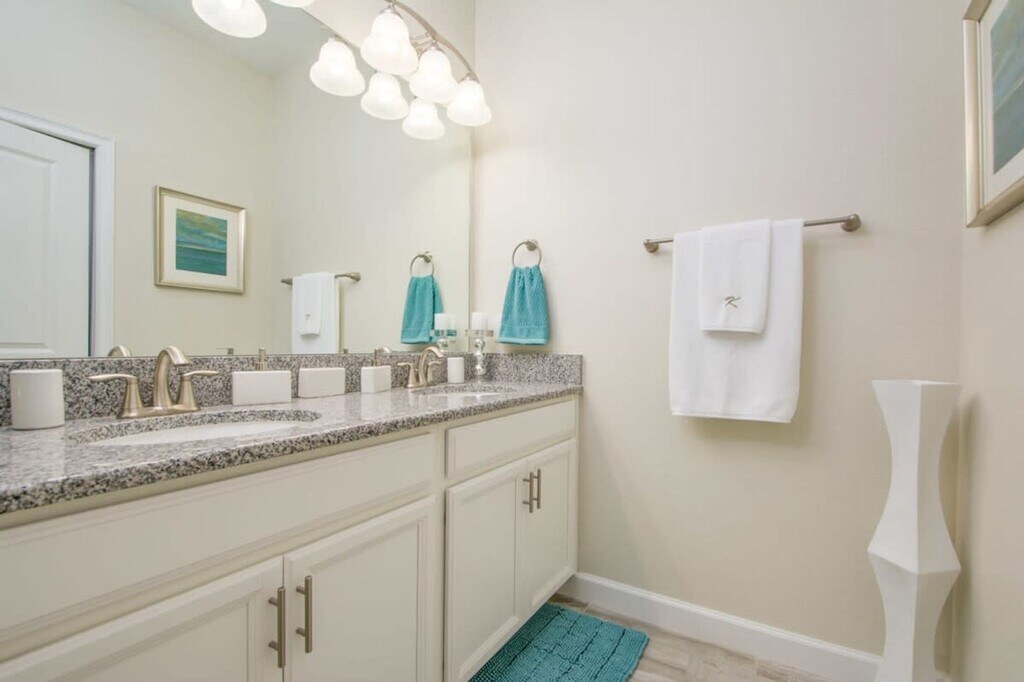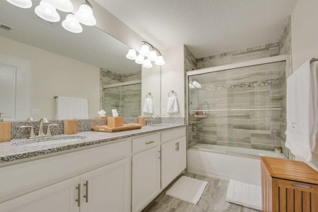 Indulge in unparalleled comfort and elegance in this exquisite 5-bedroom townhome. Enjoy ample space and relaxation with a private pool. Dive into the refreshing pool or embrace resort amenities at the clubhouse. Disney Theme Parks, local stores, and restaurants are just moments away, adding extra excitement to your stay. Create unforgettable moments with loved ones that will linger in your heart forever! Step into the lap of luxury in this exquisitely adorned villa, offering abundant space for up to 10 guests. As you step inside, you'll be greeted by a capacious living room seamlessly merging with the dining area and well-appointed kitchen, creating an ideal setting for entertaining. The kitchen is fully equipped for your culinary needs. Outside, a private heatable pool awaits, perfect for relaxation. This villa boasts 5 bedrooms, spread across two floors. On the first floor, a queen bedroom and a bedroom with two single beds share a bathroom. Upstairs, a queen suite and another suite with two single beds await, along with a third bedroom featuring a queen bed and its private bathroom. Additional amenities encompass free WiFi, parking, a laundry area with washer and dryer, and a welcome kit of essential bathroom and kitchen supplies. Don't miss out on this extraordinary opportunity for a lavish retreat with family and friends. Replenish of bathroom and kitchen amenities are the guest responsibility. Heating the pool is a paid service and there is also a fee charged to use the barbecue grill. Storey Lake Resort has the perfect location just 10 minutes from all major attractions and theme parks in Orlando (Walt Disney World, Universal Resort and Sea World). You will find fantastic resort amenities for the whole family to enjoy with a tiki bar, a resort-style pool with slides and lazy river, sports court, mini-golf, kaiak and fitness center. There are 2 clubs inside the property, one of them with a themed pirate pool that kids will love is just walking distance from the house. Located just off Osceola Parkway, the resort has easy access to restaurants, shopping, and supermarkets, everything with a just 5 minutes drive distance. Quiet Between: 22:00 - 8:00. [SI]