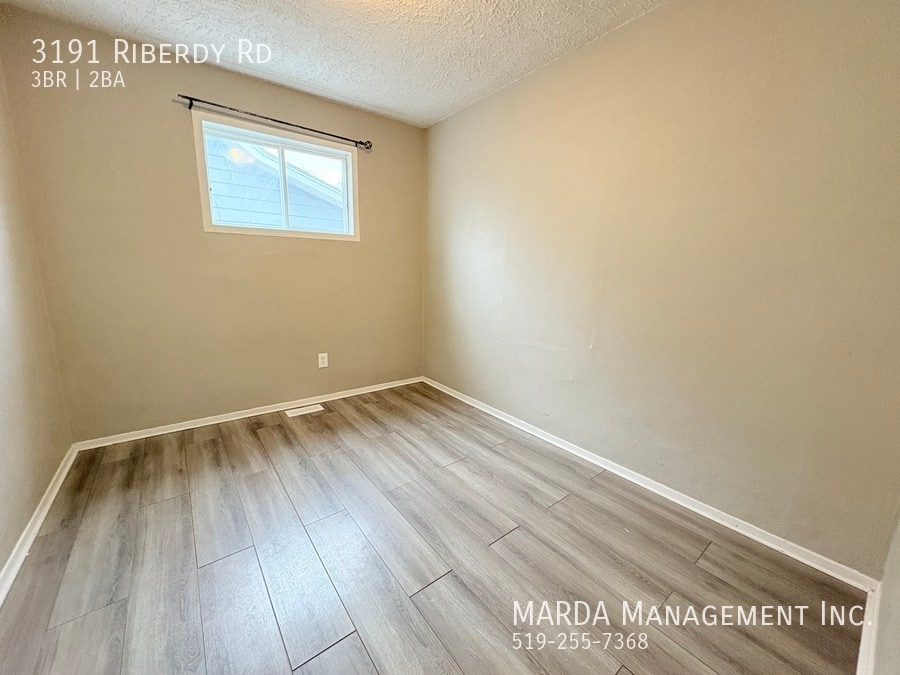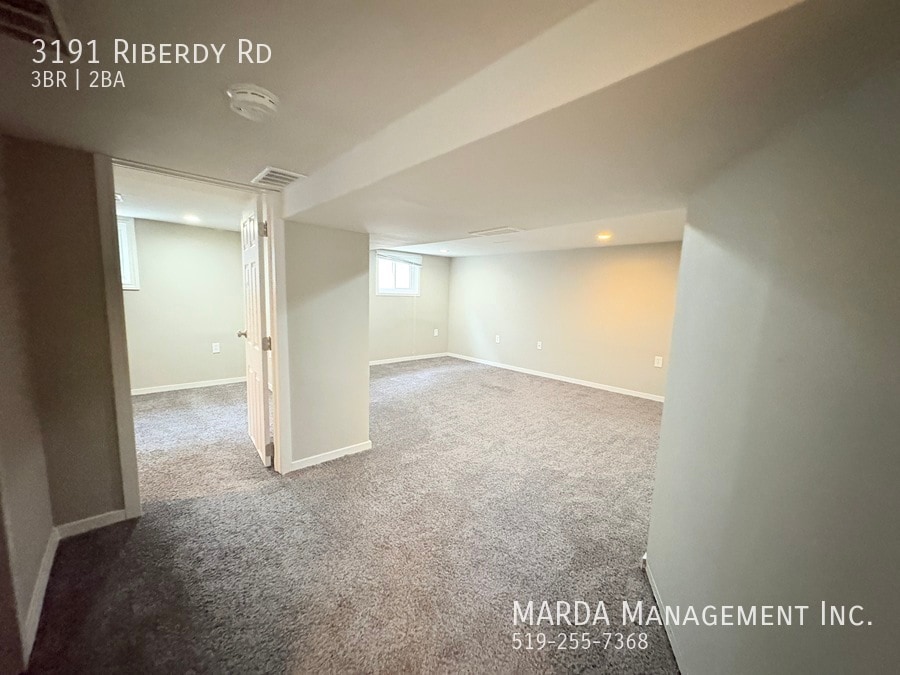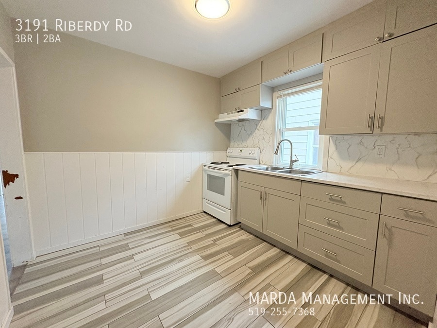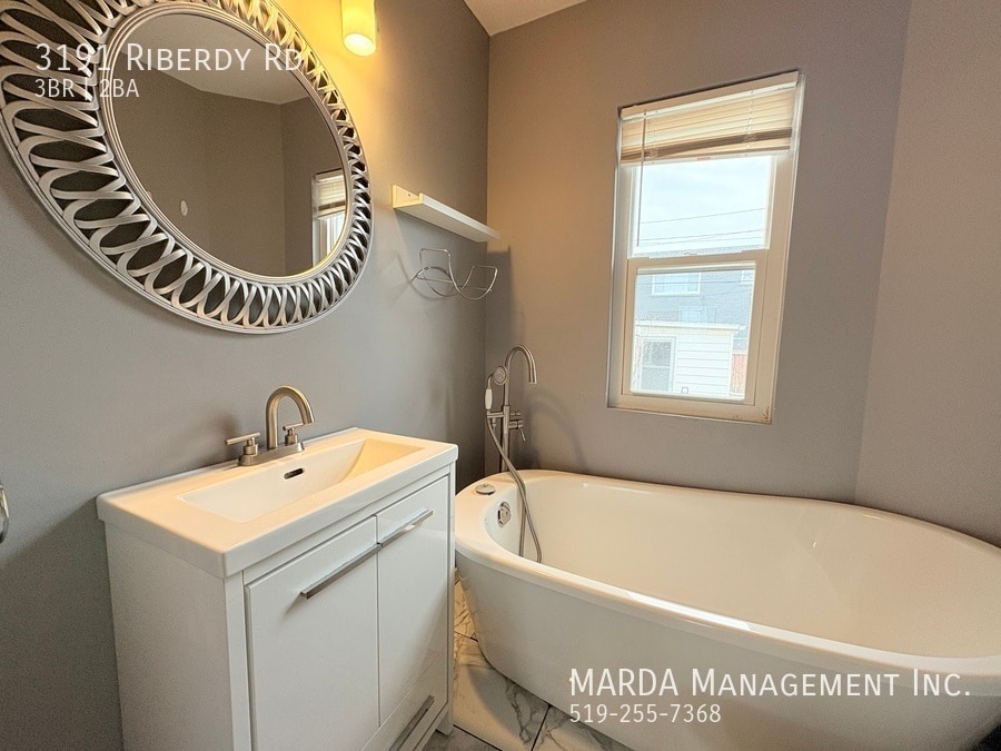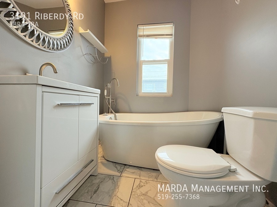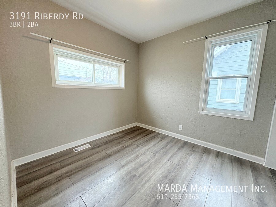 Welcome to 3191 Riberdy Rd! This spacious and bright 3-bedroom, 2-bathroom single-family home is perfectly located just off Walker Road, close to all amenities, bus routes, Devonshire Mall, Costco, great schools, and restaurants. Step into a sun-filled entryway, perfect for relaxation or showcasing your favourite plants. The main floor features modern grey laminate flooring, a cozy living room with a charming fireplace, and two spacious bedrooms with ample closet space. The stunning bathroom boasts marble tiling, a modern vanity, and a deep tub, offering a spa-like retreat. The updated kitchen shines with grey cabinetry, a marble backsplash, and elegant white wainscoting. The fully finished basement adds extra living space with a large carpeted area, a second full bathroom with a stand-up shower, additional storage, and a third bedroom. Enjoy year-round comfort with central AC and the convenience of an in-home washer and dryer. The fully fenced yard and nearby amenities make this home ideal for families. Tenants are responsible for snow removal and lawn care. First and last month's rent and a credit check are required. Professionally managed by MARDA Management, this property offers 24/7 maintenance support and easy rent payment options. Don't miss out on this incredible home! Contact MARDA MANAGEMENT at or email to schedule your viewing today. Watch a video tour: Laminate Flooring No Smoking Allowed Pet Friendly