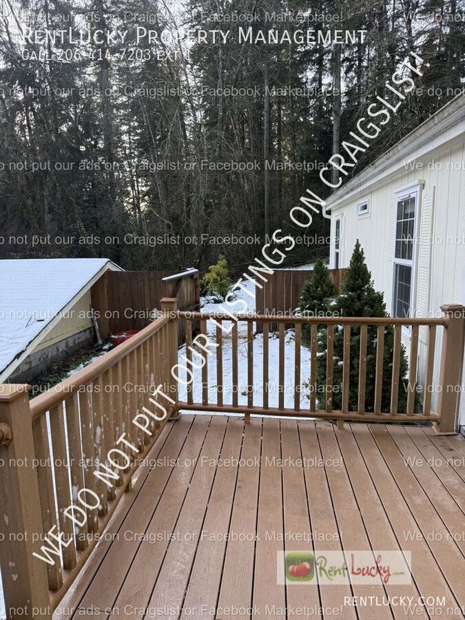 GARDENER'S DREAM! Don't miss this recently updated Duvall home on HUGE lot! Relax in the sun room or wander out to fully fenced yard offering plenty of space for play, gardens or animal pasture. This incredible property boasts a calm and tranquil atmosphere (with a peaceful creek sound nearby!) and the ultimate in privacy. There are 2 outbuildings and 2 storage sheds on the property. The light-filled 3 bedroom, 2.5 bath home features a sun room, vaulted ceilings, hard surface flooring throughout (no carpet) and wood stove. The light & bright kitchen has plenty of counter and cabinet space, pantry and stainless steel appliances. The roomy master suite has its own bath and walk-in closet. All appliances provided, including washer and dryer. Plenty of RV parking. Tenant to pay garbage and electricity. Home is on shared well and septic system, so no water or sewer to pay! Make an appointment to view this wonderful home today! BEWARE OF SCAMMERS! If you see a Craigslist OR Facebook Marketplace ad for this house at a lower price or an ad that does NOT mention RentLucky Property Management, SCAMMERS have posted the other ad. RentLucky does NOT put our listings on Craigslist NOR Facebook Marketplace. If you have been dealing with a SCAMMER, please reach out to RentLucky immediately at . TIPS & TRICKS to a Successful Leasing Experience with RentLucky! ARRANGE A TOUR: Visit our website at