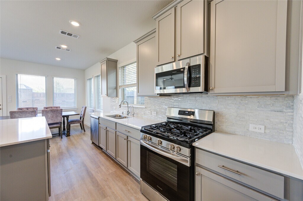 Beautiful "Like New" construction in highly desired Dellrose with quick access to 290 and 99! Gorgeous park directly across the street with large playscape and picnic pavillion. Dellrose amenities include pool,clubhouse,tennis,pickleball! A++ curb appeal with stone & stucco elevation. Luxury primary suite with oversized seamless shower,on trend cabinet treatments,lighting,fixtures. Large open LIGHT AND BRIGHT kitchen,dining,living area with LVT flooring,ceiling fan,stainless appliances. Washer,Dryer and Refrigerator included! Extra storage under stairs and in walk in bedroom closets. Utility room conveniently located upstairs. Full sprinkler for easy lawn care! Immediate move in! MLS# 19981603