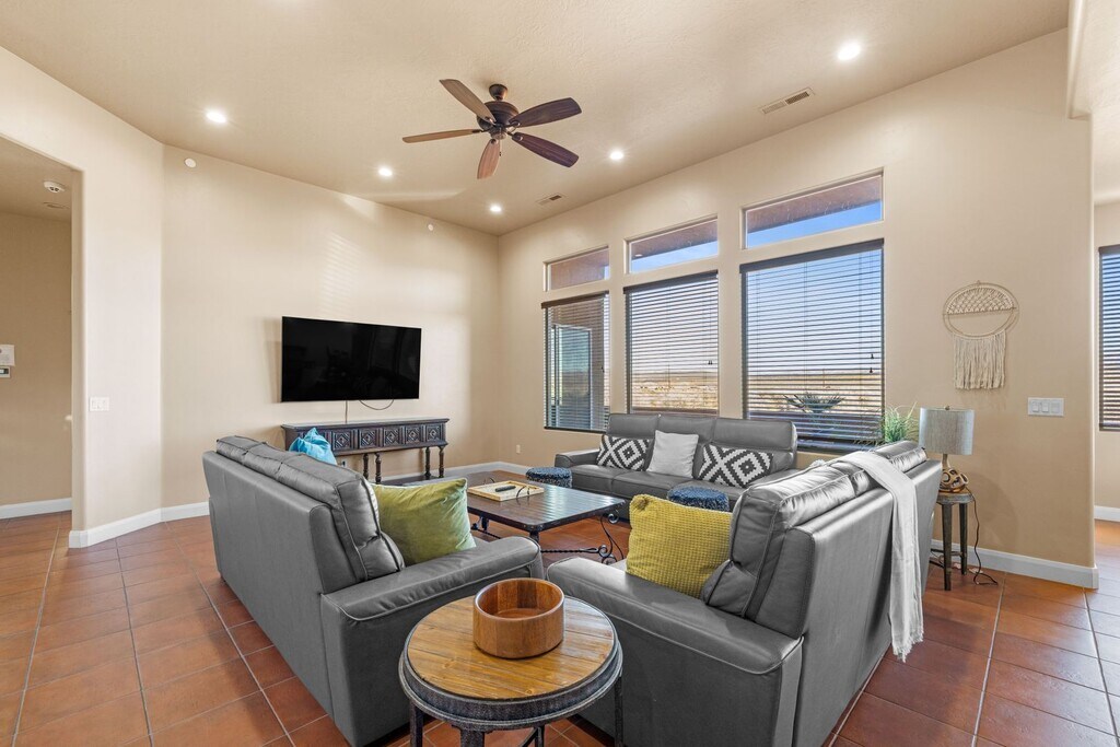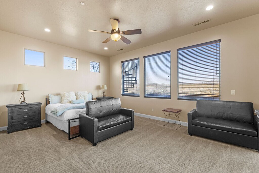 Walking into this home you are immediately met with a feeling of anticipation for the great getaway ahead. The bright home, fun colors, and one-of-a-kind bunkroom set you up with incredible feelings of home while experiencing a one-of-a-kind stay! From the rooftop balcony, private pool, rooftop spa and firepit, themed rooms, and a bunkroom for all your adventures, there is something for everyone to enjoy in this home away from home!