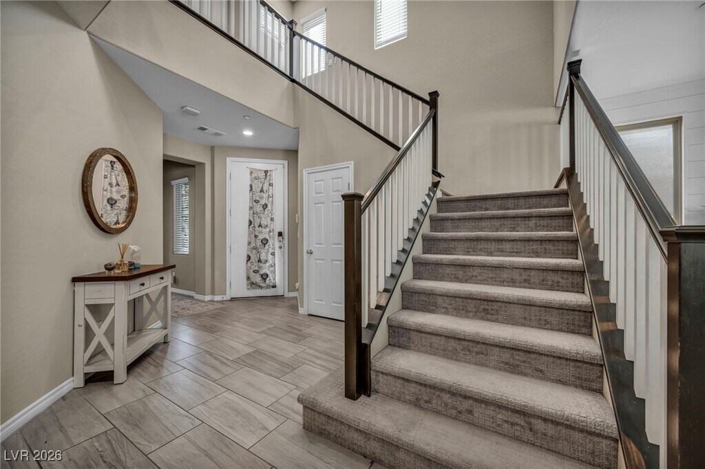 Nina GrozavBeautifully maintained and move-in ready 5-bedroom, 3-bath home located in a gated Henderson community. Open-concept floor plan with a bright living area and modern kitchen featuring an island, stainless steel appliances, and walk-in pantry. Primary suite includes a private balcony with park views and a large custom walk-in closet. Exceptional backyard with heated pool, covered patio, and professionally landscaped yard ideal for outdoor living. Additional features include solar panels, powered window shades, custom storage throughout, Ring security cameras, and an oversized garage with built-ins. Approx. 3,058 sq. ft. of living space plus 497 sq. ft. garage. Immaculate condition and pride of ownership throughout. Ready for Move-In immediately.