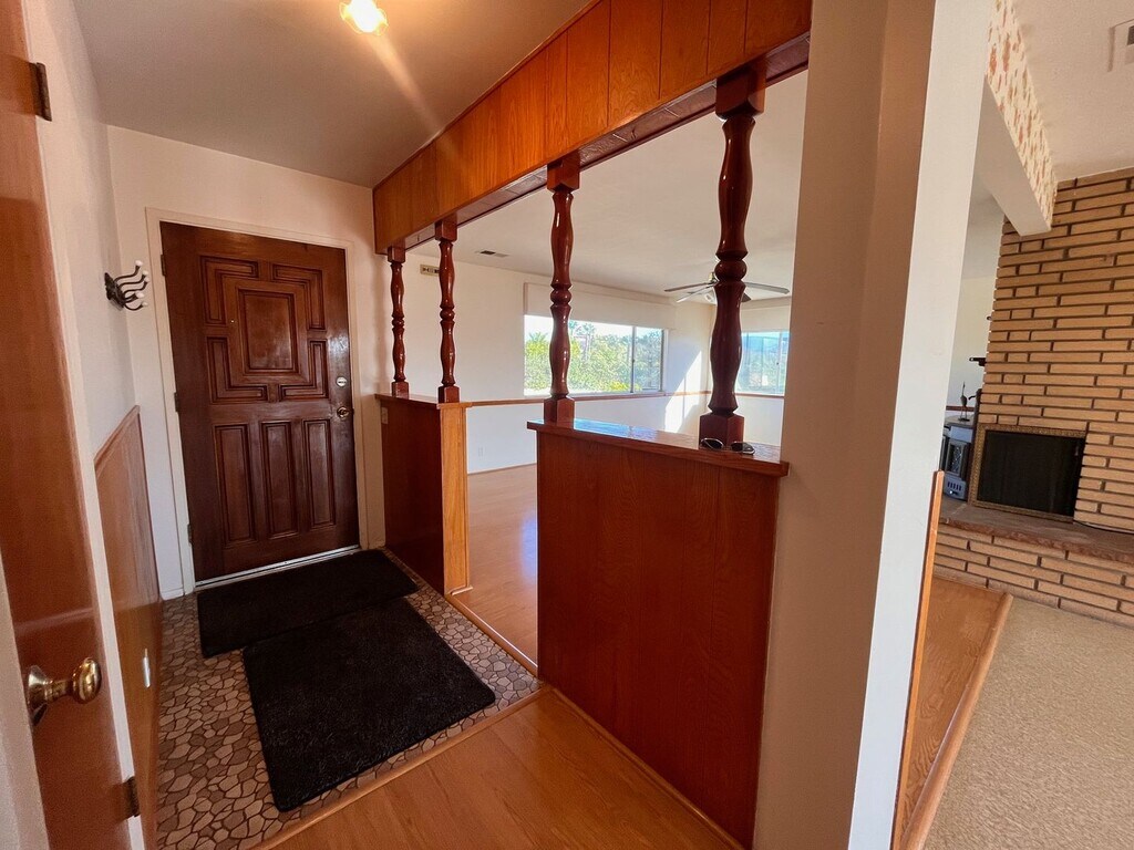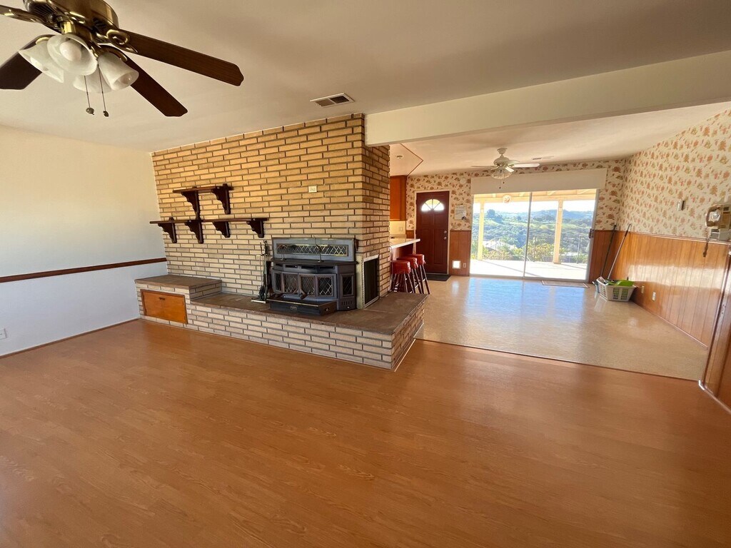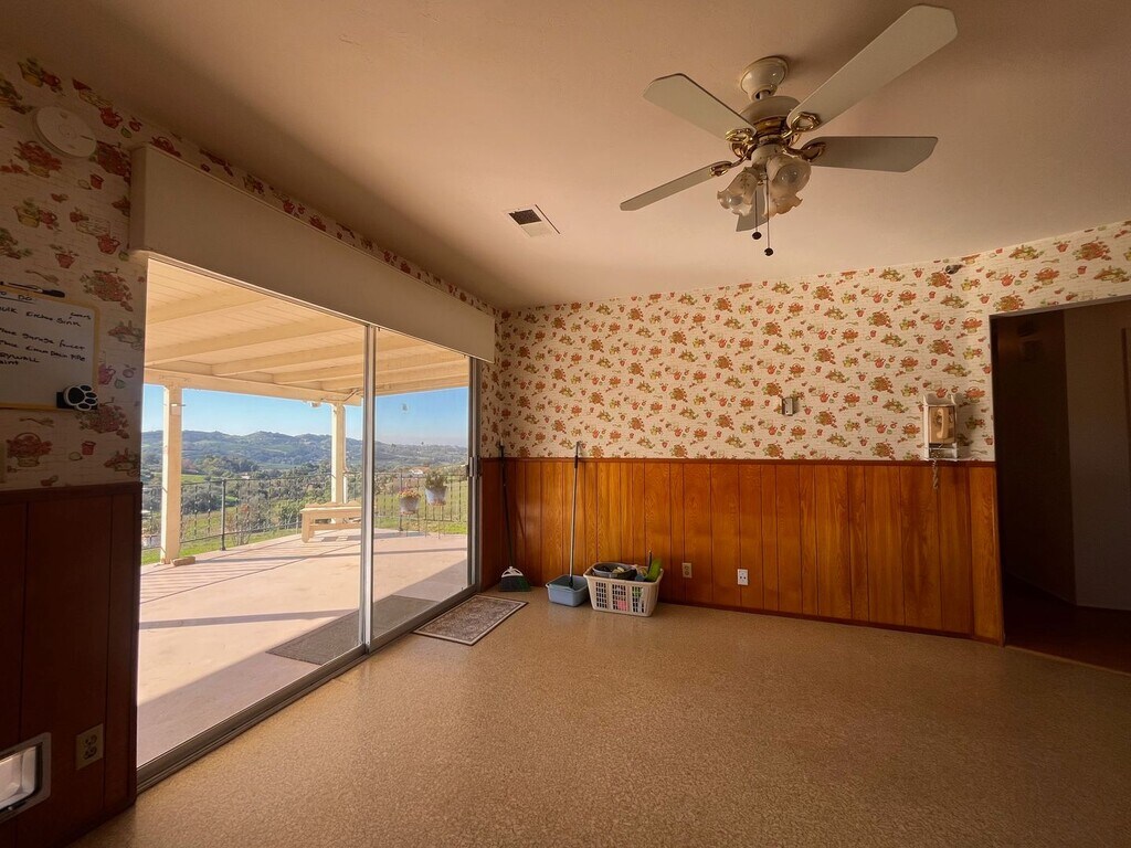 Beautiful retro home situated in a rural setting of Bonsall with stunning views and open space. You truly feel the open, expansive and relaxing setting this special home and property embrace you with. As you enter the home you will feel the nostalgic warmth the home has to offer with wood accents in the foyer and wood flooring in the living room appointed by a massive brick centerpiece fireplace. Dinning room and kitchen accents mirror the entry and living room with a patio slider in dinning area that leads out to the large cover patio so you can enjoy the views and sunlight while making and eating your favorite meals. Kitchen has ample countertop and cabinet space. Three bedrooms with wood floors, views of rolling hills and large space in second and main bedroom with one and a three quarter bathrooms. Covered patio with open views and space along with the large open and semi-private property are the highlights of this beautiful property. Home also features a ground level basement with pool table providing entertainment space and a two car garage with laundry hook ups. This is a special home and property to enjoy.