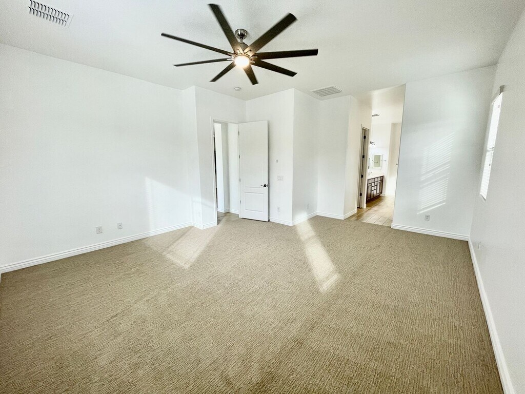 This stunning 3 bedroom, 2.5 bath home features an additional den which makes a great office space, light wood tile plank throughout, upgraded carpet in bedrooms only, fresh interior paint, granite countertops, stainless steel appliances, upgraded lighting & fans and so much more! The exterior has been completely renovated with gorgeous travertine pavers and artificial turf, perfect for entertaining or enjoying your morning coffee. Addition amenities are gated community, community park, close to shopping/entertaining. The pictures don't show just how beautiful this home is, schedule a showing appointment today!