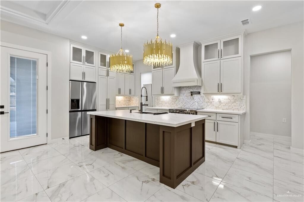 Welcome to this stunning newly constructed Mediterranean-style home located in Mission,TX,offering luxury,space,and modern elegance. Situated on an expansive half-acre lot,this property features 4 bedrooms and 2.5 bathrooms with high-end finishes throughout.The home features impressive high ceilings,an open-concept layout,and abundant natural light that enhances the refined design and craftsmanship. The spacious living areas flow seamlessly into a gourmet kitchen equipped with top-of-the-line appliances,premium countertops,custom cabinetry,and modern fixtures. Exterior features include fenced entry,excellent curb appeal that highlights the home’s Mediterranean architecture. The yard offers ample space for outdoor enjoyment,making it ideal for those seeking comfort and room to breathe.This home combines luxury finishes,thoughtful design,and a desirable Mission location. With its spacious layout,elegant style,and premium features,this property is a rare lease opportunity.