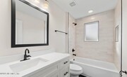 Built in 2024,this 3-bedroom,2.5-bath home offers 1,928 sq ft of modern comfort with an open floor plan,hardwood and carpet flooring,ceiling fans,and central A/C. The renovated kitchen features a breakfast bar,hardwood cabinets,and stainless steel appliances. A porch and patio overlook the fenced yard,perfect for relaxing or entertaining,while washer/dryer hookups add convenience. Just minutes from Klutho Park,Springfield Historic District,and UF Health Jacksonville,this home blends new construction with neighborhood charm. Lease terms available: 24 month; 36 month. Schedule a showing today to explore this home! MLS# 2109498
