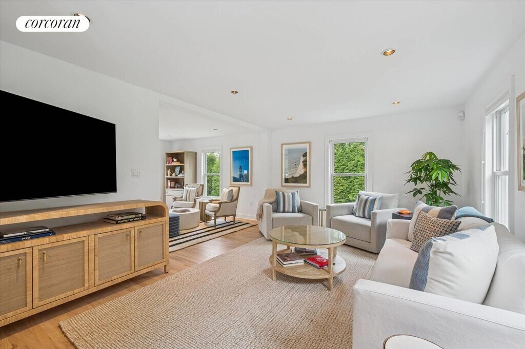 This light-filled home on a secluded corner lot in the Village of Sag Harbor has been transformed by a complete, designer-led reimagining. The home has newly redesigned interior and exterior spaces, guided by the designers focus on high-quality finishes, natural textures, and a calm, cohesive aesthetic that flows throughout the residence. The main level is defined by an expansive, open-concept layout that creates a gracious setting for any occasion. The modern, newly-renovated kitchen, anchored by a large stone-topped island and premium appliances, is perfectly appointed for both casual daily living and sophisticated entertaining. A separate large, and comfortable den offers a quiet space for media and relaxation. Upstairs, you'll find four generously sized bedrooms and two and a half spacious baths, providing comfort and space for family and guests alike. A true sanctuary, the home's defining feature is its seamless connection to the magnificent outdoor spaces. A wall of French doors opens from the main living areas to a sprawling deck, overlooking the meticulously manicured grounds. This private, half-acre property has been transformed into an idyllic retreat, with mature hedges and trees creating a true sense of privacy. The heated gunite pool is perfectly positioned for sun and is surrounded by a sprawling terrace providing multiple, distinct venues for lounging and unwinding.The considerable lawn and thoughtful landscaping provide an exceptional environment for the afternoon and al fresco dining, creating an outdoor living experience as refined as the interior. Not to be outdone, the home's close proximity to shopping and dining within the Village as well as the similarly short walk to Havens beach only add to the unparalleled lifestyle it offers. [[Rental Registration # R25-0080]]