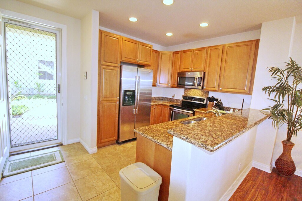 This beautiful and spacious, mostly furnished, ground level unit has 2 bedrooms 2 bathrooms and a large 116 sf lanai that can be accessed from the living room slider or from the master bedroom. Newer luxury vinyl plank flooring and tile throughout. This unit comes with a private single car garage and a second assigned parking space. The kitchen features granite counters, stainless steel appliances, nice cabinets, microwave, dishwasher. There is a washer & dryer with a laundry room and sink. 10 foot ceilings for a bigger feel. Three Split-system air conditioners for your comfort located in each bedroom and the living room along with lighted ceiling fans, security screen door on the front door, and window coverings on all windows. This complex has a resident and guest only pool, hot tub, BBQ area with ample seating/tables & pool side cabanas. Car wash area located on the property. Quarterly outside pest spraying is provided by the HOA in the owner’s dues—if interior spraying is wanted, see Manager —you need to arrange 2 days in advance and pay Mid-Pacific Pest Control for separately. Water, sewer, and standard trash removal as provided by the HOA included in the rent. Tenants responsible for all other utilities, including obtaining and maintaining renter's insurance. The beach is located about 2 blocks away which is a popular place to view the sunset. Restaurants, shops, grocery stores, medical and dental offices and the post office are all short distances away, some as close as 1 block away. This is a wonderful location and complex to enjoy all that beautiful Kihei, Maui has to offer. No Pets. 12 month lease preferred.