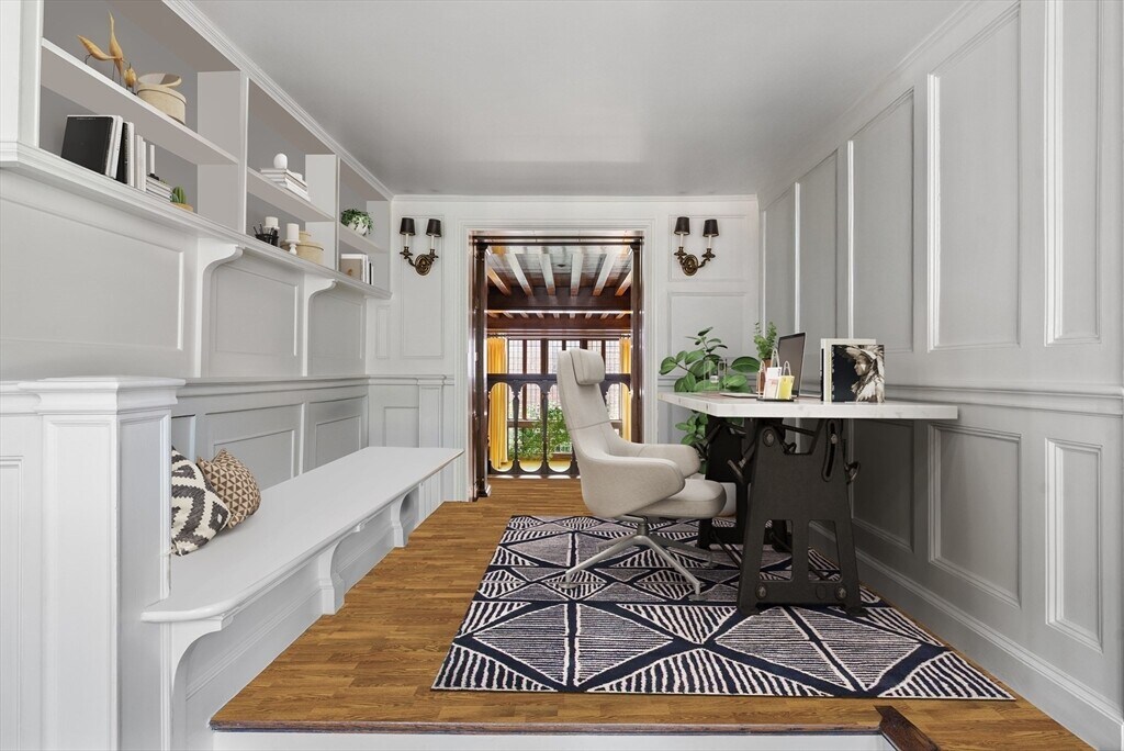 An exquisite city-center residence in an ambiance seeming like a tranquil garden suburb,this one-of-a-kind circa 1914 townhouse by noted architect Richard Arnold Fisher stands on a tree-canopied,block-long street on the Flat of Beacon Hill. Inspired by English traditions,this beautifully livable jewel with six fireplaces has been tastefully restored and renovated by its long-time current owners & features enchanting outdoor spaces on the private garden terrace and a roof deck where 360-degree views take in the gold-domed State House,Back Bay and Downtown. As the showpiece living/entertaining space,the lofty double-storied great room is at once grand and inviting,rising to a beamed ceiling above the luminous window wall,majestic fireplace and library wall with minstrel’s gallery. The garden level’s airy window-walled open space combines the gourmet kitchen and casual living/dining area. The versatile bedroom layout offers the option of creating an expansive full-floor primary! MLS# 73436308