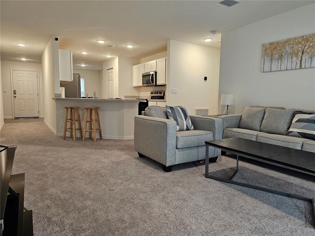 Beautiful energy-efficient home located in desirable Palm Coast area. Available UNFURNISHED in early February 2026. This well-maintained property features luxury vinyl plank flooring throughout the main living areas and carpeted bedrooms for added comfort. The home offers: 3 Bedrooms / 2 Bathrooms. 2-Car Garage. Additional flex space ideal for an Office,Den,or Home Gym. Stainless steel appliances. Refrigerator and Washer/Dryer included. Open-concept living room with great natural light. For added convenience and security,the home includes: Schlage electronic keypad for the garage-to-laundry entry. Electronic keypad on the front door. Wireless keypad for the garage door opener. Application and tenant screening are required through RentSpree for all occupants 18 years and older. Please use the following link to apply: MLS# O6370814