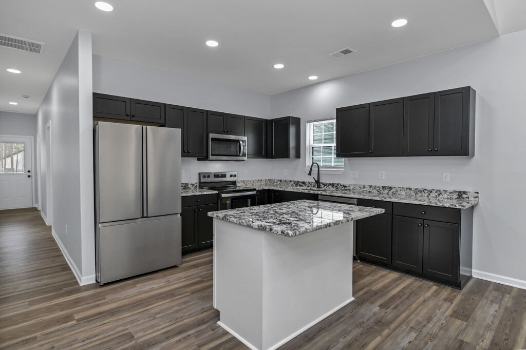Welcome to this beautifully crafted new construction home offering modern design, thoughtful details, and effortless one-level living. This 3-bedroom, 2-bathroom home with a 1-car garage combines comfort and style in a highly functional layout. Step inside to a bright and open living room featuring vaulted ceilings, creating a spacious and airy feel that flows seamlessly into the kitchen. The kitchen is equipped with stainless steel appliances, sleek finishes, and plenty of space for cooking and entertaining. Both full bathrooms are designed with convenience in mind, each featuring illuminated mirrors that provide excellent lighting, perfect for your daily routine. The home also includes a dedicated laundry room for added functionality and organization. With its modern finishes, clean design, and single-level layout, this home is ideal for those seeking low-maintenance living in a brand-new space. Lease Terms: First month’s rent and security deposit due at lease signing. No pets allowed. Self Guided tours can be Scheduled Monday-Friday 9am-3pm Schedule a self Guided Tour: