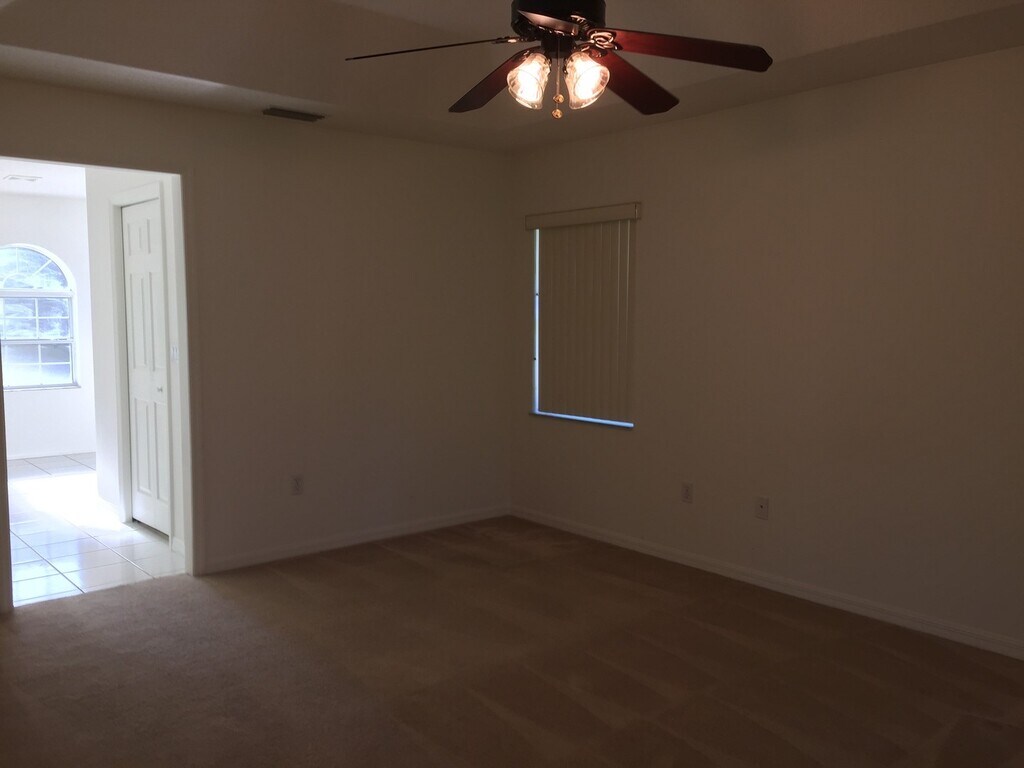 NICE 3-bedroom/2-bath home with a tile roof that backs to a reserve area. Split floor plan with vaulted ceilings. Large size master bedroom with tray ceilings, double sink vanity, tile and glass shower enclosure with his and her closets. Two additional bedrooms and Guest bathroom with shower/tub combo. Double sets of sliders from both the family room and master bedroom access the HUGE screened in lanai area that runs almost the entire length of the back of the home. 2-car garage with irrigation well. This home includes Lawn service. NO PETS ALLOWED. Requirements: Minimum of a 600 credit score is required on all applications. Rental History will be verified. Quick and easy application process