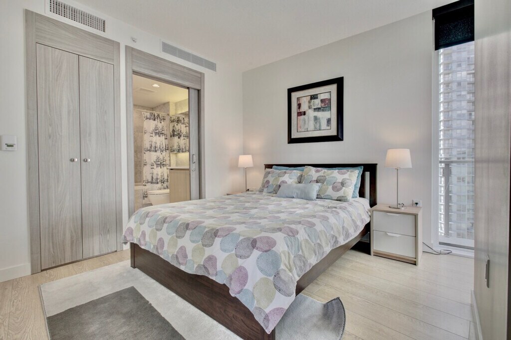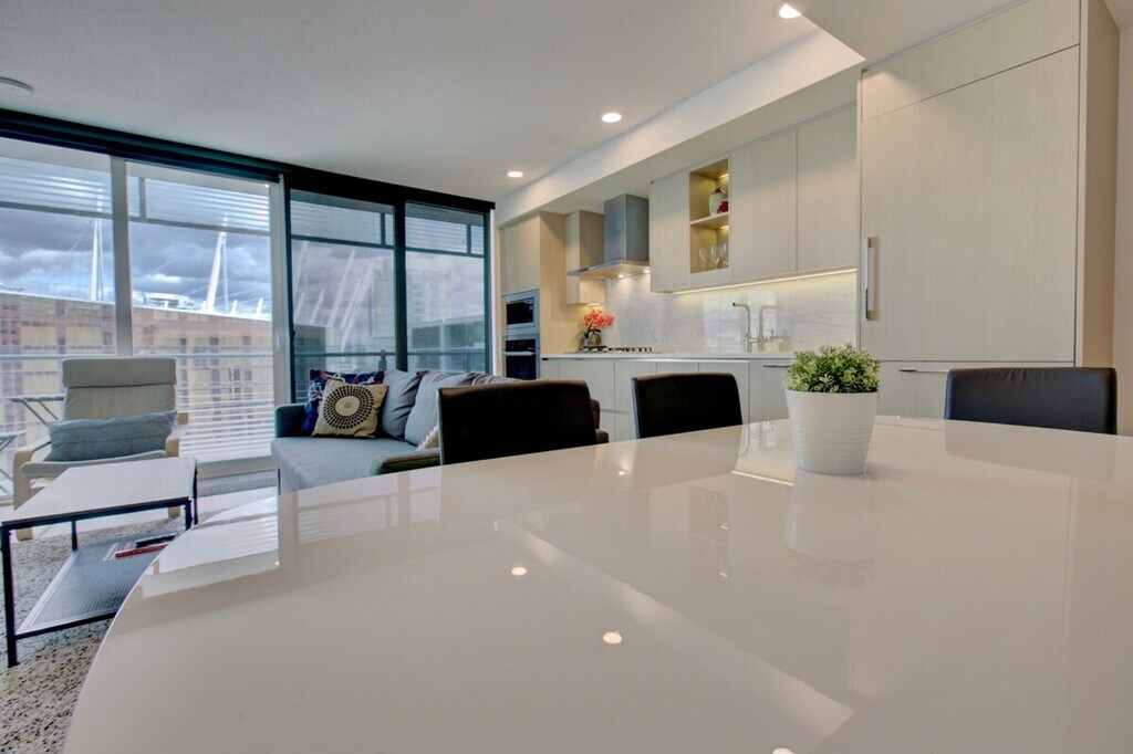 Feel at home in this Yaletown Vancouver 2-bedroom condo at The Arc, featuring a spacious layout, hardwood flooring, and a balcony. Enjoy the beautiful kitchen with dual-tone cabinets, built-in appliances, quartz counters, marble backsplash, and plenty of pantry space. This condo boasts enough space to host guests, with room for a dining and living room. A lovely master suite includes a separate second bedroom that truly allows you to maximize the space. Included is a discreet in-suite laundry, air conditioning, gas, hot water, and internet. Enjoy access to the onsite fitness facility, hot tub, party room, meeting room, and swimming pool. One parking space is included. A one-time cleaning fee of $195 applies. Located in a terrific neighborhood, close to main hubs like Cambie Street, The Cambie Street Bridge, and Nelson Street, you have access to the entire city in every direction. Enjoy nearby BC Place, close proximity to the Waterfront, or stroll North a few blocks to access more amenities on Beatty Street and Cambie. Pets are not considered at this time. [SI]