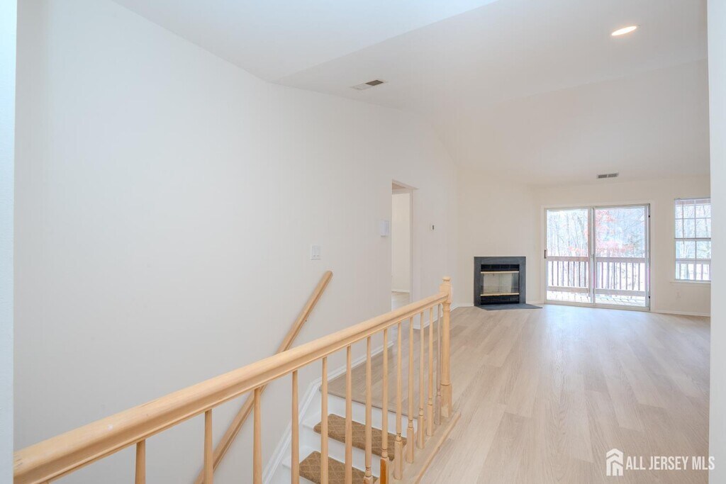 Spacious second-floor townhome with a wonderful private location backing to a wooded area in the desirable Royal Oaks@Tangelwood community. This two-bedroom home has been beautifully renovated and features neutral dcor and high-quality vinyl wood-like flooring through most of the home. The eat-in kitchen has some stainless steel appliances and newer dishwasher,tiled back splash and under mount lighting. Next to the kitchen is a large combination dining room and family room with a wood-burning corner fireplace,and sliding-glass doors leading to a covered deck overlooking woodlands. The primary bedroom offers a closet and en suite bathroom. Down the hall is a second bedroom and the main bathroom with a laundry closet. Royal Oaks is just minutes away from restaurants,and shops. Nearby to major highways and great for commuting to NYC. South Brunswick offers award winning schools and many community activities. A winner!