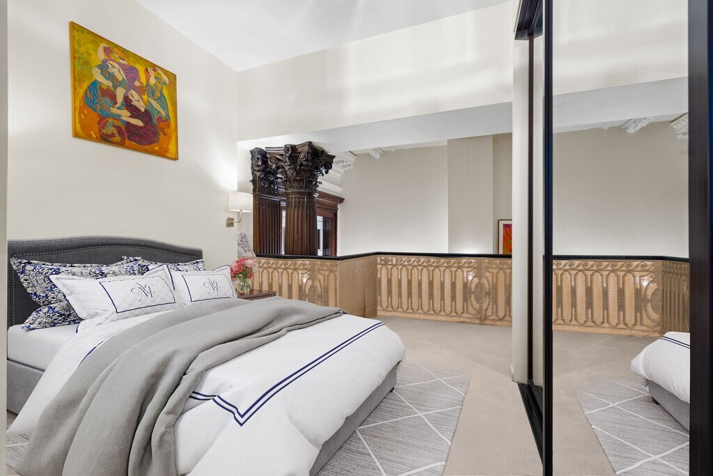 Make your stay in New York City memorable—and exceptional. Across the street from Bryant Park is one of the rarely available luxurious residences at Bryant Park Place, a historic neo-renaissance building originally built in 1907 as The Engineers’ Club, listed in 2007 with the National Register of Historic Places, and designated a landmark in 2011. The furnished offering is a stunning 5-room duplex, that was originally part of the Club’s ballroom. Enter into a magnificent parlor, adorned with artfully-restored wood Corinthian columns that soar 20 feet. The distinctive charm, warmth and serenity of this meticulously preserved space cannot be overstated. Adjoining the parlor is a dining room partitioned off by sliding glass doors, and a bedroom/study flanked by 3 large windows lit from the South and West. Between these two rooms is a voluminous custom closet. The full bathroom downstairs is outfitted with sea green glass tiles, cream-toned ceramic floors, a custom full height linen closet, and a glass-enclosed 4-jet spa shower. Original expansive mirrored door frames lead to a generously sized windowed chef's kitchen, with tall light oak cabinets, granite countertops, a Viking stove, a stainless steel Miele dishwasher, and a Whirlpool refrigerator. Ascend to the primary bedroom in the loft upstairs, complete with a triple sized custom closet, and an en-suite bathroom, featuring a deep soaking tub with rain shower fixtures, custom vanity, and a Toto Washlet bidet. Hardwood floors, abundant built-in storage under the staircase, and tasteful furnishings throughout complete the offering. Bryant Park Place features extraordinary prewar details in the grand marble lobby and offers its residents first-class service. Amenities include a 24-hour doorman, a live-in resident manager, a full-size laundry room, and bike storage. This prime location boasts access to Michelin restaurants, museums, cafes, theater, all subway lines, Grand Central, Metro-North, LIRR and New Jersey Transit, a Whole Foods supermarket, the New York Public Library, CitiBike, Lincoln Tunnel to Newark and the Queens-Midtown Tunnel to JFK, and naturally, all the delights of Bryant Park. Fees include: -$500 Co-Op Review Fee (non-refundable) -$750 Move-In Deposit (refundable) -$750 Move-In Fee (non-refundable) -$500 Processing Fee (non-refundable) -$300 Rush Interview Fee (should a Rush Interview be scheduled) (non-refundable) Plus, standard Domecile fees: $120 Initiation, $65 Digital, 5% App Processing. Rental Terms: Monthly: $7,000