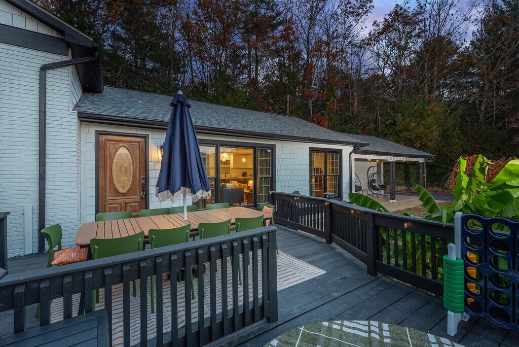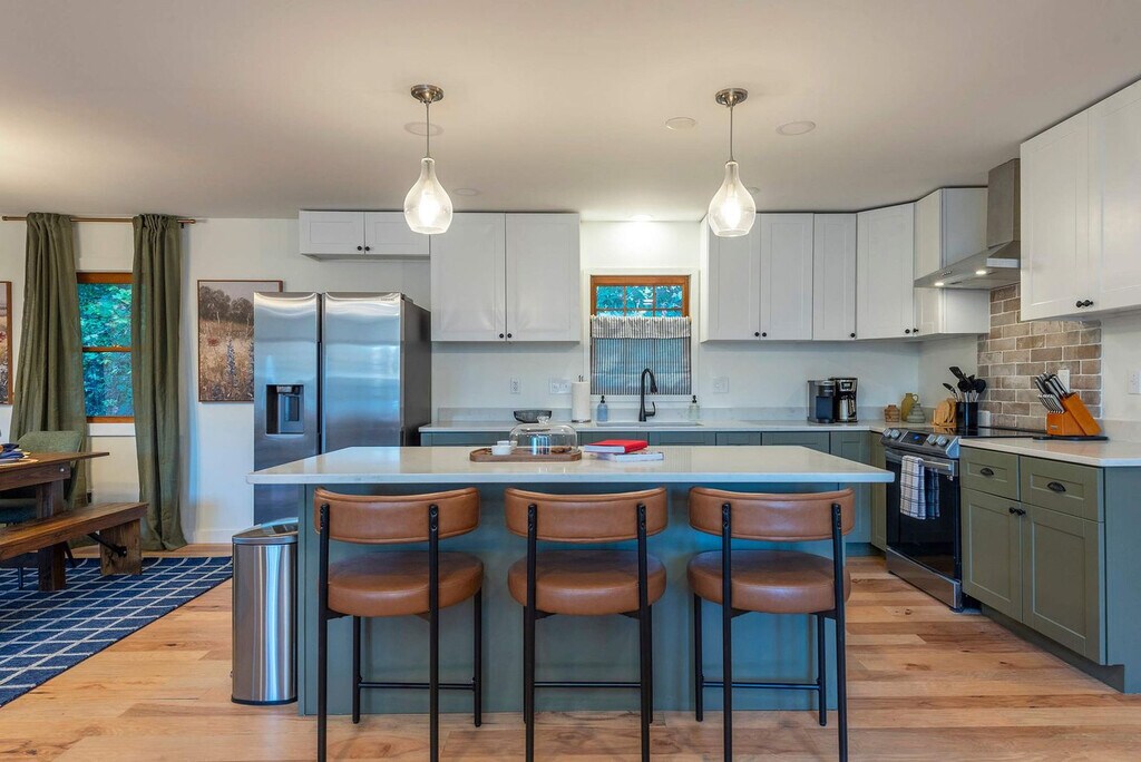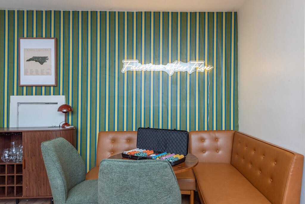 Feel at home in this spacious 4-bedroom, 4-bathroom home in a prime location in Fairview, NC, offering the perfect mountain escape for up to 16 guests. This home offers an open-concept living area with floor-to-ceiling windows, a fully stocked kitchen with high-end stainless appliances, a game room with a mini bar area, poker table, foosball table, arcade games, darts, air hockey, popcorn machine, smart TV and fireplace. Enjoy outdoor amenities such as an expansive deck with stunning views, a hot tub, a fire pit, an outdoor patio/dining area, a BBQ grill, giant Jenga, Connect 4, corn hole, an inflatable kayak, a paddleboard and life jackets. Parking is available for 6 vehicles in the driveway. Street parking is not allowed. Nearby attractions include Hickory Nut Gap Farm (~2 miles), Whistle Hop Brewing Company (~3 miles), Blue Ridge Parkway Visitor Center (~10 miles), Turgua Brewing (~3 miles), and Bearwallow Mountain Trail (~5 miles). Restaurants in the area include The Local Joint (~2 miles), Smokey & The Pig (~3 miles), Terramonga Local Provisions & Deli (~2.5 miles), and Sky Mountain Pizza (~3 miles). Renting a car is a convenient option to explore the area. No parties are allowed, and violations may result in immediate termination of the stay. An exterior camera is installed to monitor the cleaning team for quality and security purposes. Guests must be 21 years or older to book this property. Check-in is at 4pm and check-out is at 10am. [SI]