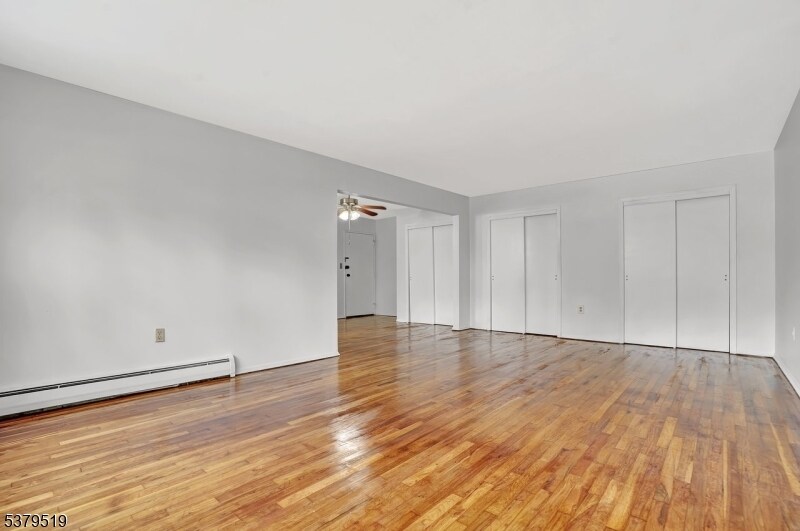 Welcome to this well-maintained 2-bedroom, 1-bath residence in the desirable Woodedge Estates community in Edison. This bright and spacious unit features gleaming hardwood floors, oversized windows, and a flowing open-concept layout that connects the living room, dining area, and updated eat-in kitchen. The kitchen is equipped with stainless steel appliances, including a gas stove and built-in microwave, along with generous cabinet and counter space. Both bedrooms offer ample closet space and are fitted with ceiling fans and wall-unit air conditioning for comfort. The full bathroom includes a tiled tub/shower combo and modern vanity. Residents enjoy a beautifully landscaped setting with wide green spaces and well-kept common areas. Rent includes gas, water, sewer, and common area maintenance. Tenant is responsible for electricity, internet, and cable. Heating is baseboard, and cooling is via wall A/C units in the living room and both bedrooms. No pets allowed. Credit score of 650 or higher is required. Conveniently located just 2 miles from Edison Train Station, 3 miles from Metuchen Station, and 6 miles from Metropark Station, with close access to Route 1, the NJ Turnpike, shopping, and groceries making commuting and errands a breeze.