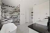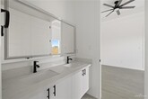 This stunning 4-bedroom,3.5-bath modern residence offers 2,522 sq ft of luxurious living space,combining style,comfort,and smart features in one impeccable package. Step into open-concept living with 8-ft interior doors,porcelain tile throughout,and sleek finishes including a wood panel media wall and quartz waterfall kitchen island. The gourmet kitchen features glossy wood cabinetry,stainless steel Frigidaire appliances,a GE range hood,and premium fixtures. The home is equipped with energy-efficient spray foam insulation,Hebel block system,double-pane windows,and two high-performance Rheem HVAC units . Enjoy outdoor living with a fully automated irrigation system,80 lush plants,St. Augustine grass,and a Japanese Blueberry tree,with LED exterior and pavement lighting. Other highlights include a full-glass garage door,EV charger,attic access with inbuilt ladder,stamped concrete,garage epoxy and a security system with cameras.