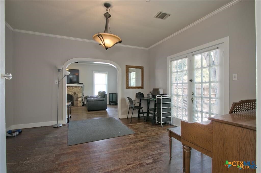 Great location close to downtown square! 2 rooms,full kitchen,double lot,detached garage and plenty of space to get creative to suit your needs in this characteristic property. This property has mature trees,wood floors,window/wall AC units,and plenty of outdoor space! Laundry room is in the detached garage. The owner manages property.