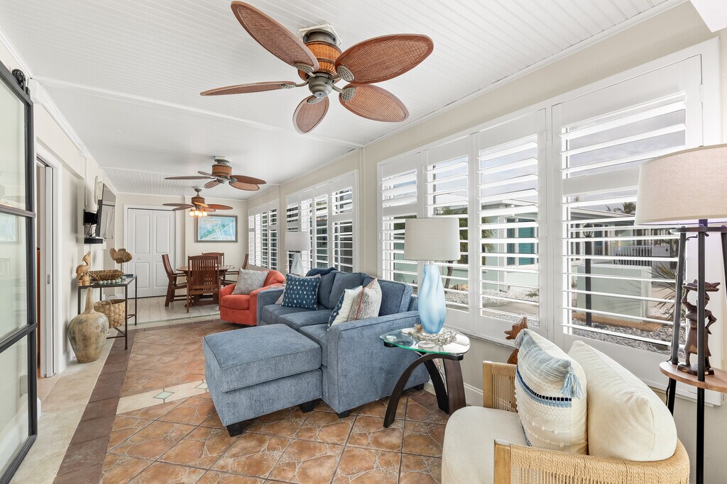 Enjoy the best of Boca Grande in this comfortable beachfront vacation rental. This home offers two large bedrooms one with a king bed and one with a queen and both with generous closet space. Two well appointed bathrooms include handicap grab bars, with one featuring a walk-in shower and the other a relaxing therapy jet tub. Smart TVs add modern convenience throughout the unit. Step outside to pristine beach access or unwind by the community pool. A perfect blend of comfort, accessibility, and coastal relaxation awaits.