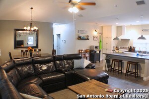 1-Story Home on 1/2 Acre Lot in Canyon Lake Hills. This beautiful 1-story home in Canyon Lake Hills could be just what you need! Set on a generous 1/2-acre lot, this charming residence combines comfort, style, and convenience. Monthly lawn maintenance is included, so you can focus on enjoying your space. ~ Step inside to a bright, open great room with soaring A-frame ceilings that create a welcoming atmosphere. The beautiful kitchen is a chef's dream, featuring featuring floor to ceiling white cabinetry, sleek black leathered granite countertops with a large island.The primary suite offers a peaceful retreat with a spacious walk-in closet, and a lovely bathroom with an oversized tile shower. High ceilings and ceramic tile flooring run throughout, adding to the home's elegance. The sunroom/bedroom is a peaceful spot with expansive windows that overlook the backyard. Step outside to enjoy the spacious covered patio with recessed lighting, and a ceiling fan for comfort, all while taking in the serene backyard views. A wrap-around deck, with plenty of room for entertaining makes outdoor living easy and fun. Huge, mature oak trees provide natural shade, while dawn-to-dusk lighting creates a magical ambiance around the property. With ample parking space and access to a 1-car garage (perfect for storage or additional parking), this home also boasts energy efficiency to help keep electric and water bills low.