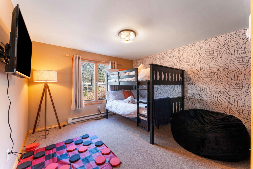 The advertised rate of $5,057/month is the lowest available price, based on a 30 day(s) stay with a move-in date of March 3, 2026. Rates vary depending on the duration of stay, season, and other parameters. For exact pricing and additional pricing components, please visit our website and enter your desired move-in and move-out dates. The rate is applicable when billed upfront; it can be higher if billed in multiple payments. Feel at home in this 4-bedroom home in Albrightsville, comfortably accommodating up to 10 guests. Nestled in a quiet neighborhood surrounded by trees, this charming home is the perfect base for creating lasting memories. This home is jam-packed with amenities, including a fully stocked kitchen with high-end appliances, a large refrigerator, ample cabinetry, a large island with high seating, Keurig and coffee press coffee makers. Enjoy the indoor fireplace, bar cart, board and card games, theater and game room, gym room, sauna, hot tub, putt putt, giant connect 4, Jenga, corn hole, fire pit, BBQ grill, and ample outdoor seating. Uber operates in the area and is commonly used to reach destinations like the Pocono Raceway. Local transportation services include Lake Harmony Turismo, which offers airport transportation and limousine services, and Carbon Taxi, which provides taxi services in the area. A personal vehicle is recommended for the most flexibility. Parking is available in the driveway for a maximum of 4 cars. Conveniently located, this home offers easy access to nearby attractions, shopping, and dining options. Nearby attractions include Skirmish USA, Hawks Falls, Boulder Field, Pocono Whitewater, Jim Thorpe Memorial, Hickory Run State Park, Penn's Peak, Split Rock Water Park, Lehigh Gorge State Park, and Pocono Raceway. Restaurants in the area include Bella Mia, Gagliano's Pizza and Restaurant, Valerio's Italian Pizzeria & Pub1, Hunan House, Pocono Pizza & Eatery, and Subway. Guests are required to complete an HOA registration application within 24 hours of booking. The minimum age for check-in is 21 years old. No pets are allowed. Absolutely no parties are allowed, grounds for termination. Quiet hours are between 10:00 PM and 7:00 AM. Includes a dedicated workspace in bedroom 1. Registration Number: 240335 [SI]