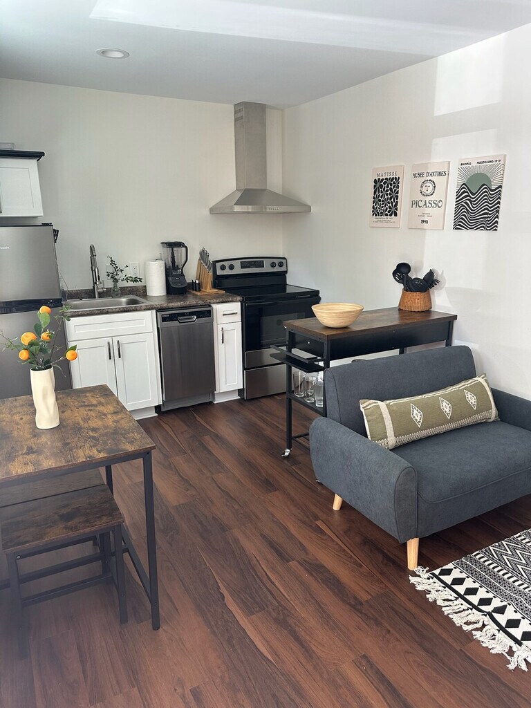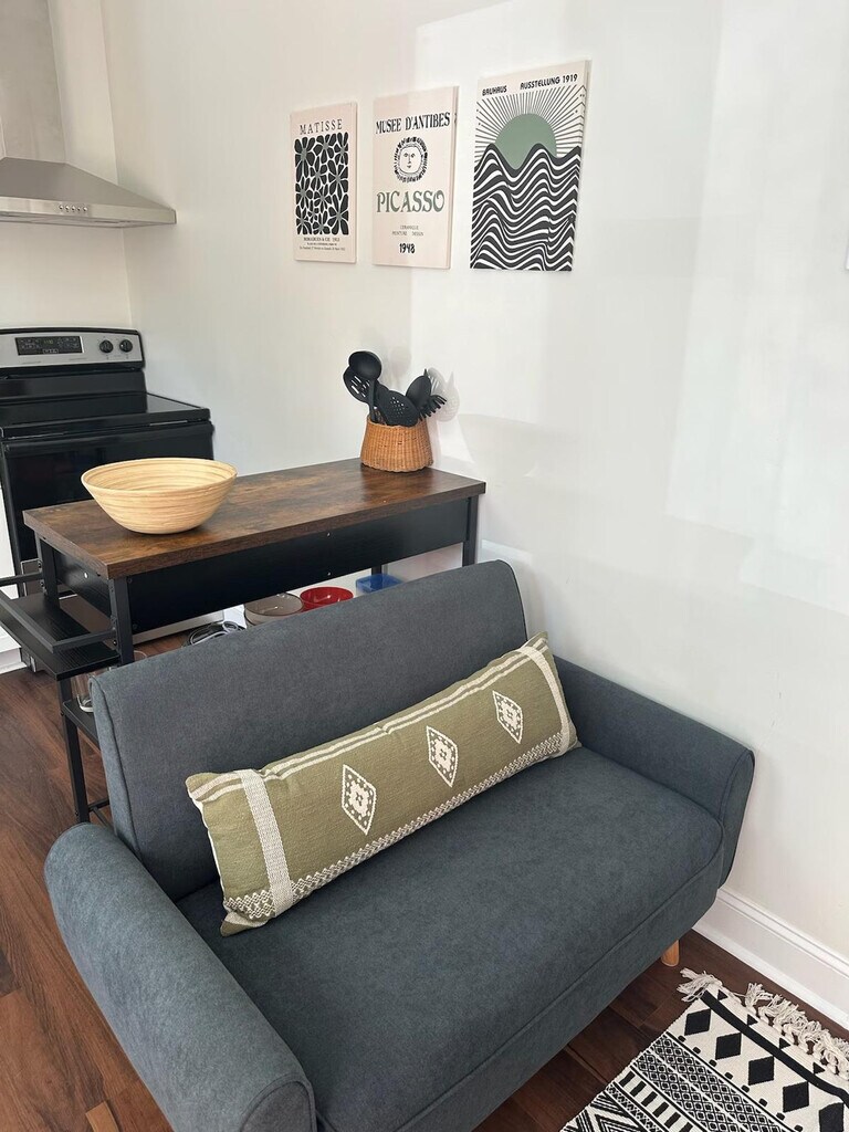 Come stay and unwind at this thoughtfully designed apartment, offering the perfect mix of comfort, style, and convenience. Whether you're visiting for a weekend escape or an extended stay, you'll find everything you need to relax and feel at home. Bright, clean, and modern, the apartment features a super comfy bed, smart TVs, and a well-stocked coffee station with both a dual Keurig and drip coffee maker. Situated just minutes from downtown, local parks, and the best hidden food spots in town, this apartment is within walking distance from the great Mountain Goat cafe. [SI]