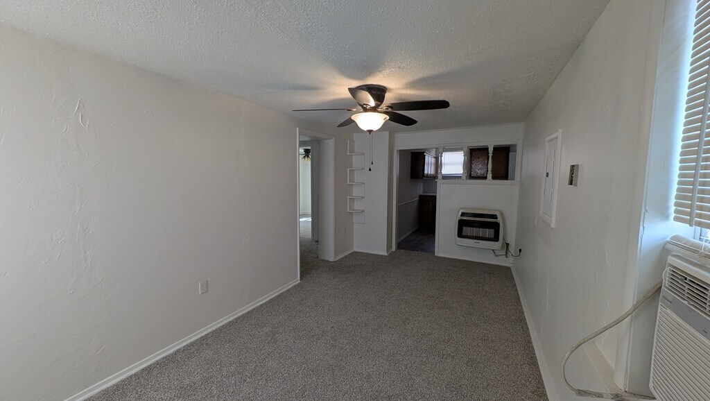 2-bedroom, 1-bath home available now at 320 W Dill in Shawnee. This home has been completely refreshed and is move-in ready. The living room and both bedrooms feature clean carpet, while the kitchen, bath, and laundry room are finished with updated LVP flooring. The kitchen includes a gas range, refrigerator, solid wood cabinetry, and a tile backsplash. Both bedrooms have ceiling fans — one includes a walk-in closet. Gas wall heat and window A/C units provide year-round comfort throughout the home. The full bath features a tub/shower combo with classic white tile surround. A dedicated laundry room with washer/dryer hookups, upper cabinet storage, and its own window rounds out the layout. A detached storage unit is included with the rental. Water is covered for a flat $50/month, and lawncare is provided — two less things on your plate.This is a no-smoking, no-pet property. Upon approval, security deposit and first month's rent are due within 7 days of lease signing to receive keys.
