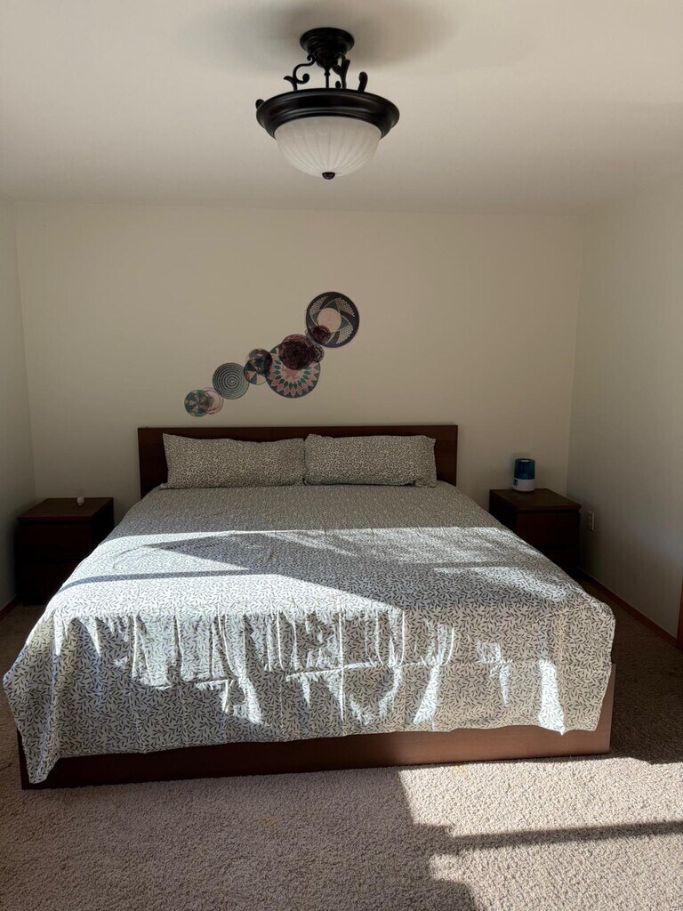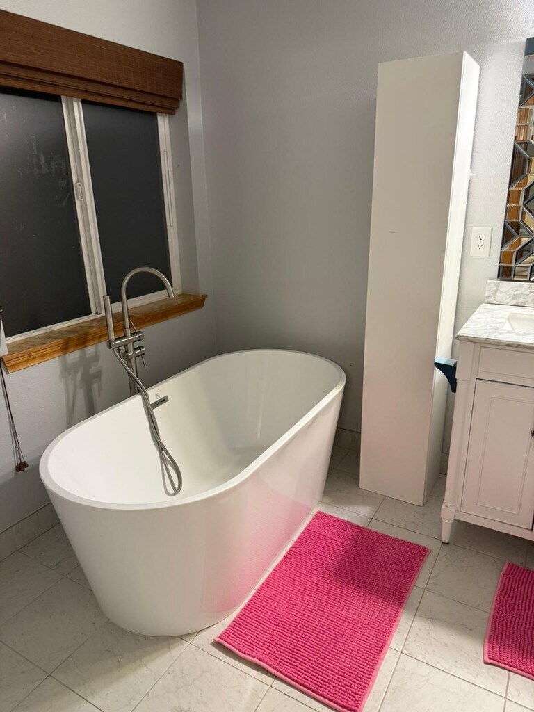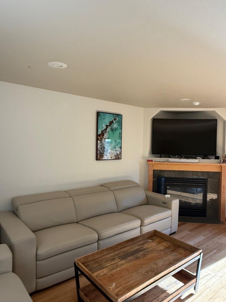 This beautifully furnished 3-bedroom plus office home offers an impressive blend of style, comfort, and convenience—perfect for professionals, families, or anyone in need of a temporary stay. The open-concept great room seamlessly connects the living, kitchen, and dining areas, featuring a modern kitchen with stainless steel appliances and bamboo flooring. The luxurious master bath has been remodeled to include a freestanding tub, frameless glass shower, and elegant tile work. The home also includes a fully fenced, low-maintenance backyard, with a play park and sports court just down the street. The dedicated office is equipped with a desk and dual monitors, making it ideal for remote work. Sleeping arrangements include a king bed in the primary bedroom, a queen in the second, and a full in the third.
